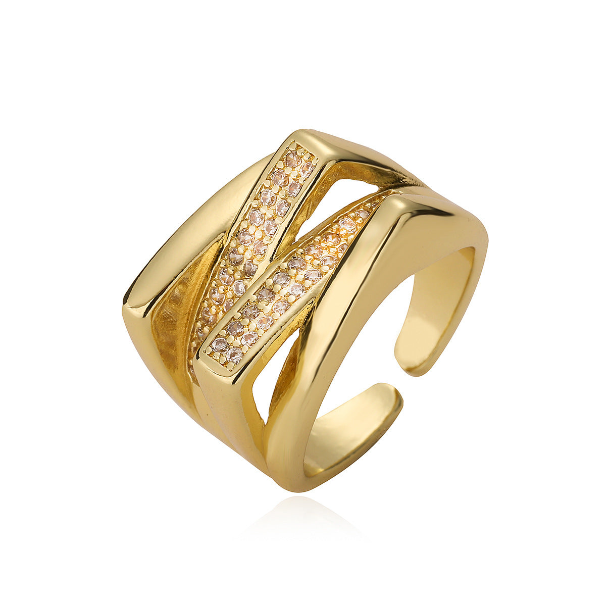 18K Gold Plated Geometric Zircon Open Ring for Women