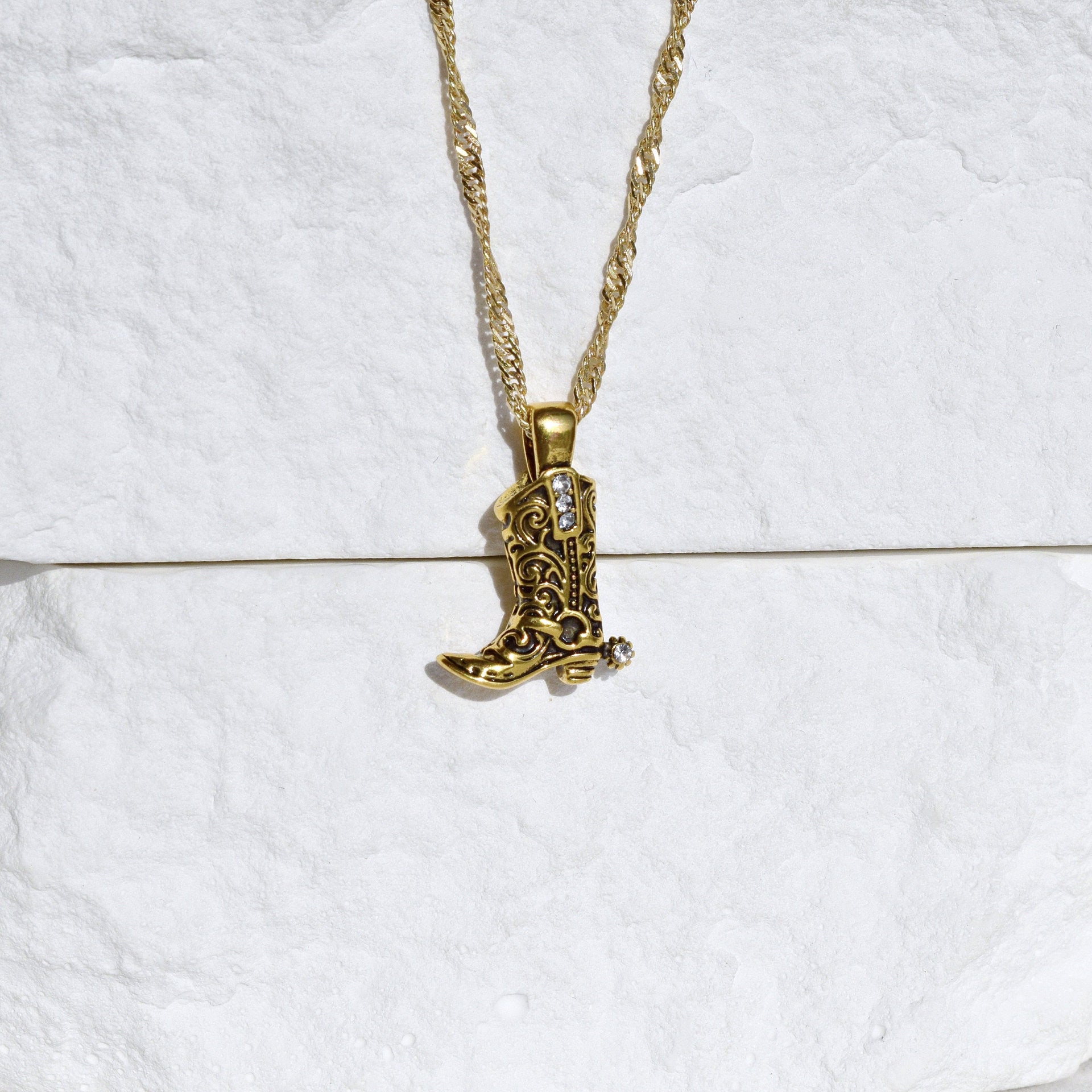 Copper 18K Gold Plated Western Cowboy Boots Zircon Pendant Necklace