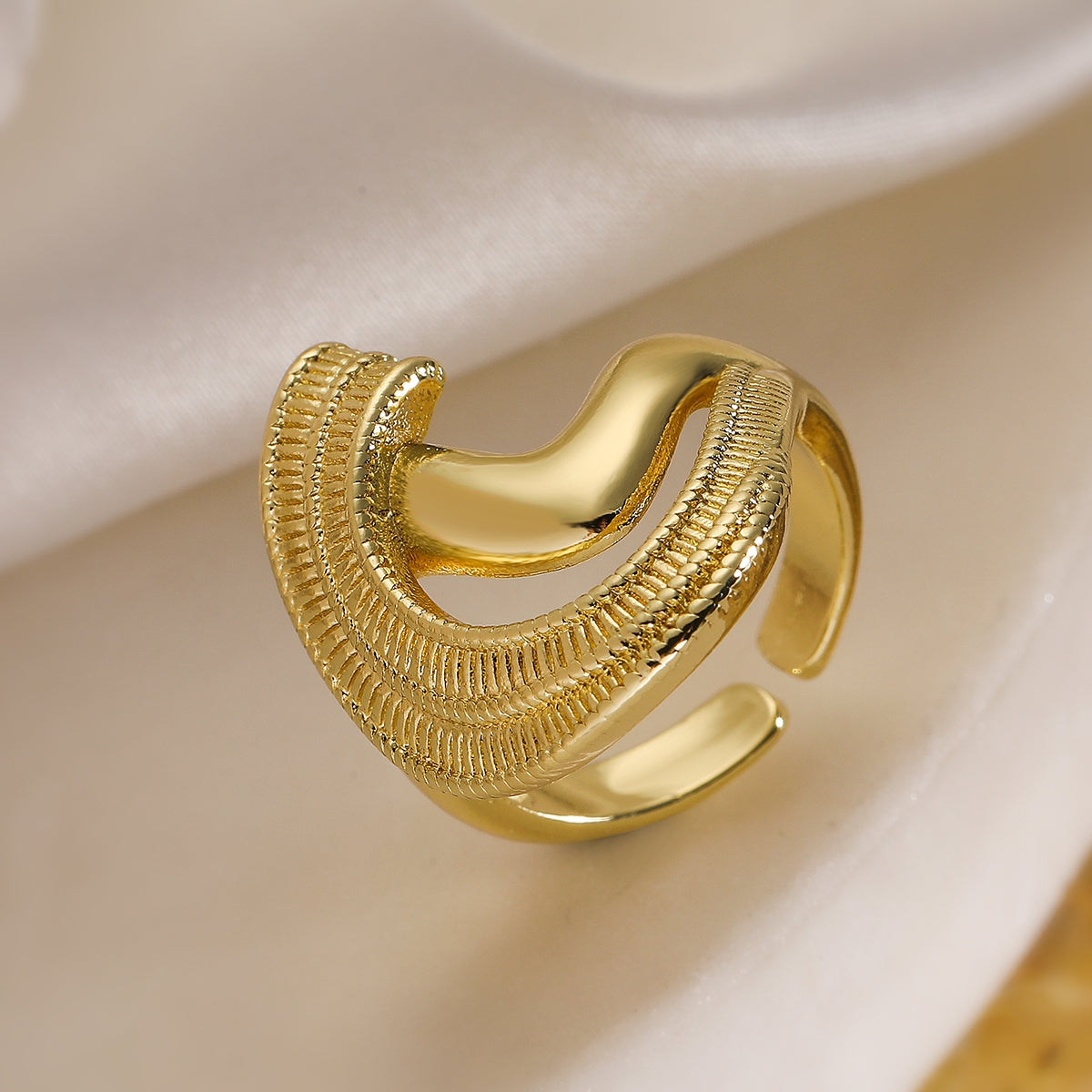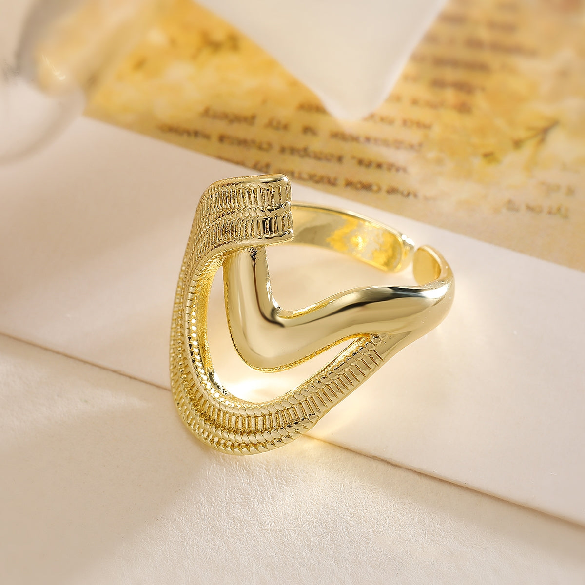 18K Gold Plated Geometric Open Ring - Minimalist Design