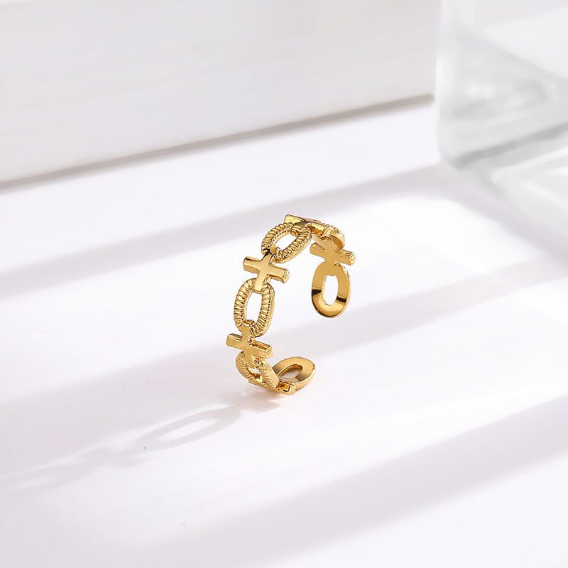 18K Gold Plated Adjustable Cross Circle Titanium Steel Ring