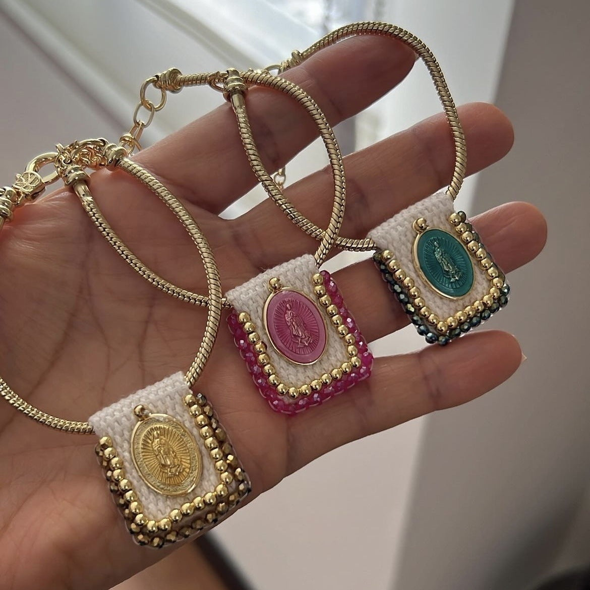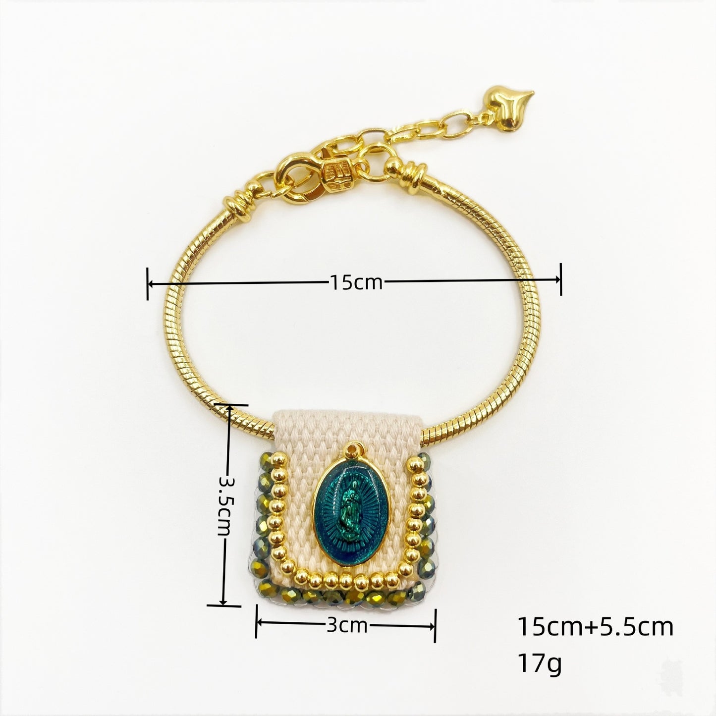 Copper Plated Square Bracelet with Vintage Religious Charm