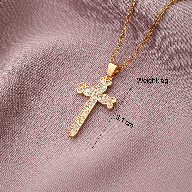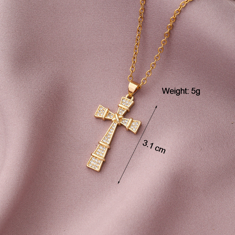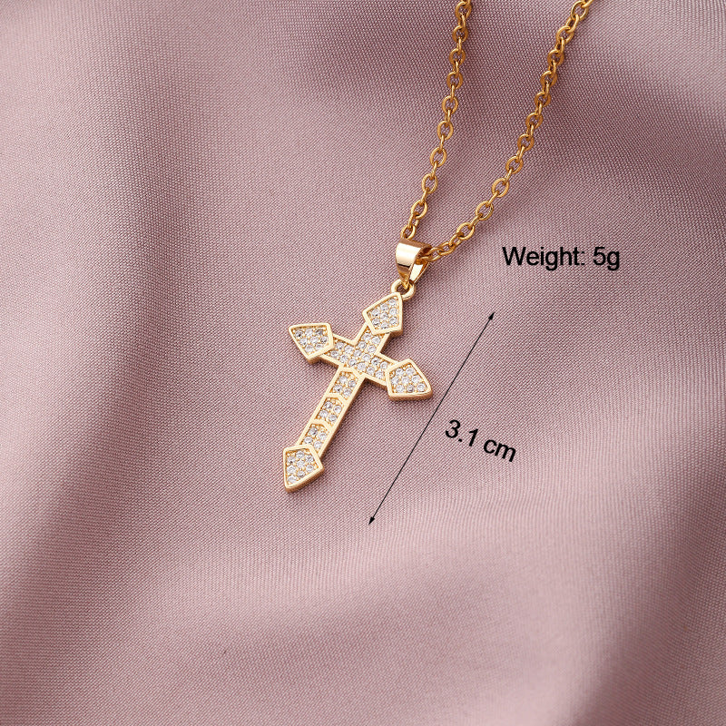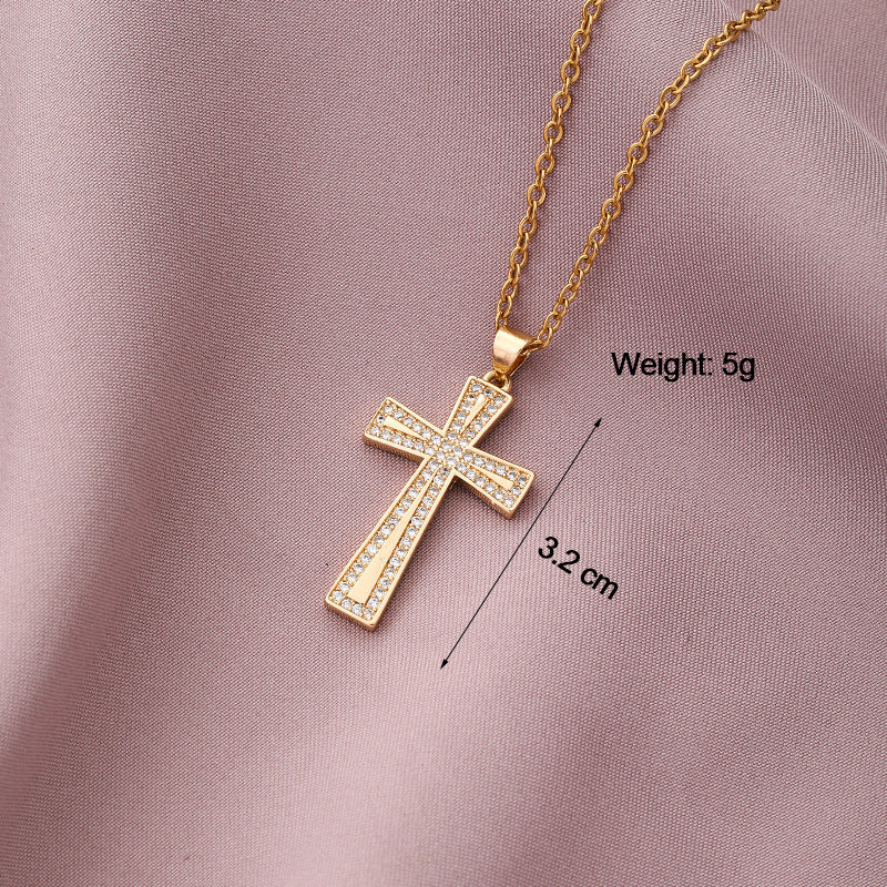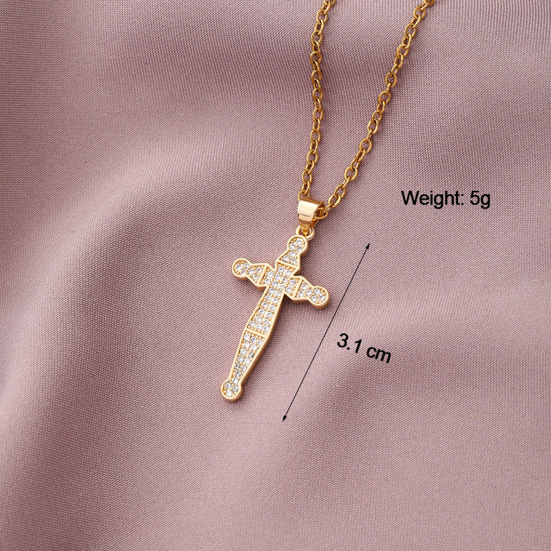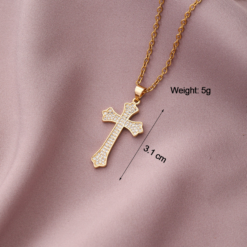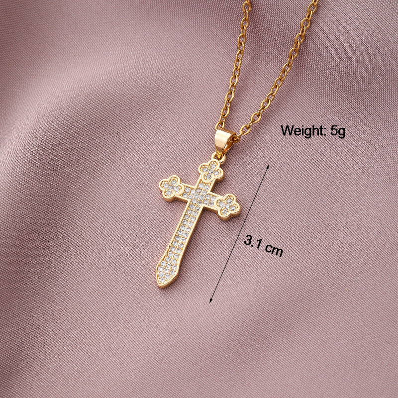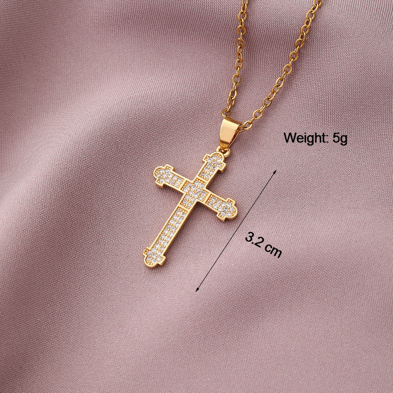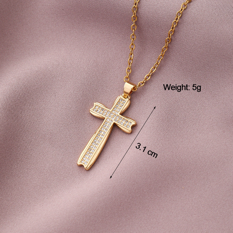 Copper Plated Zircon Cross Pendant Necklace for Men and Women