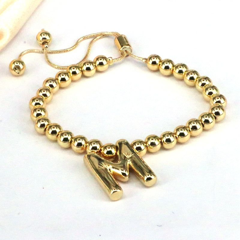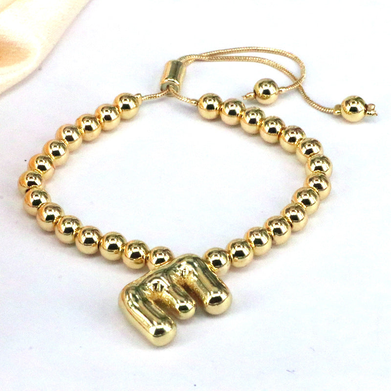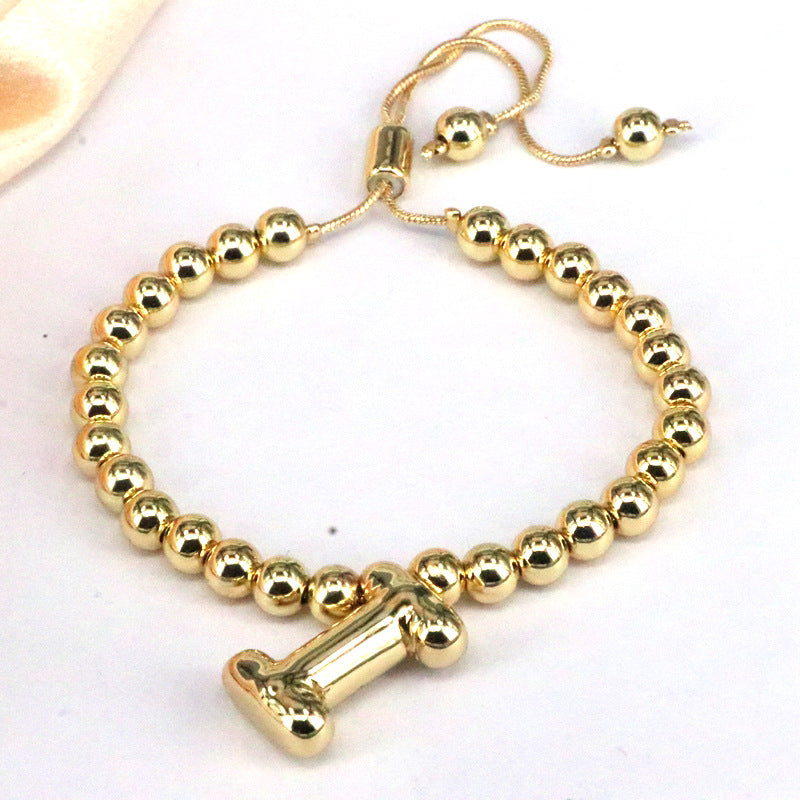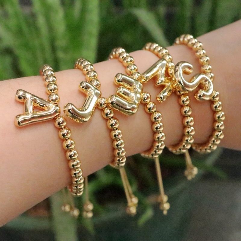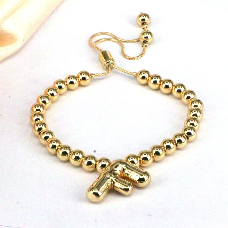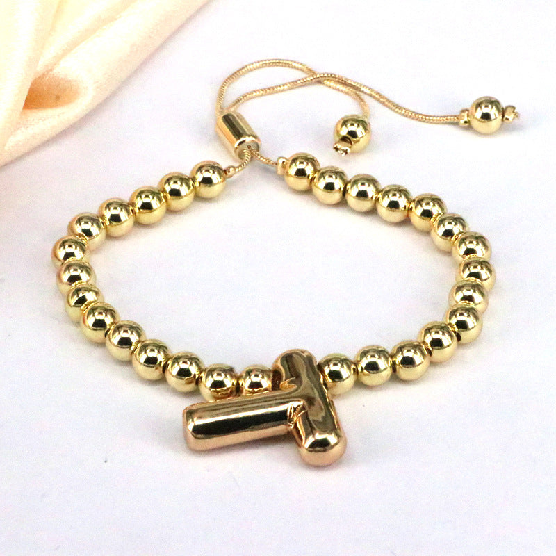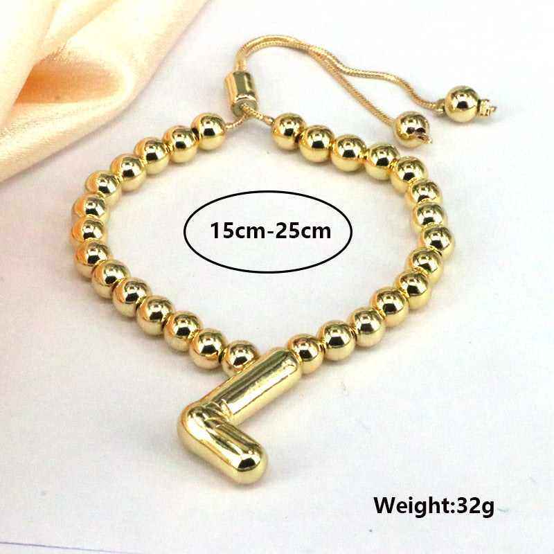 Copper Gold Plated Adjustable Initial Letter Beaded Bracelet for Women