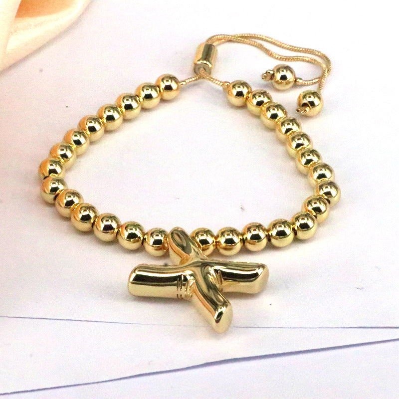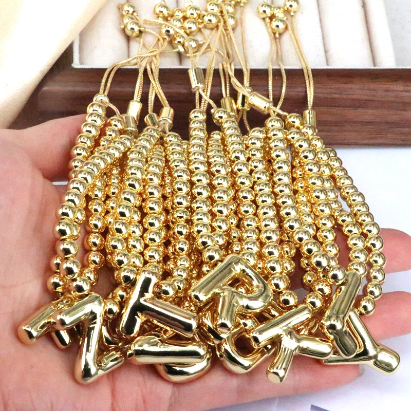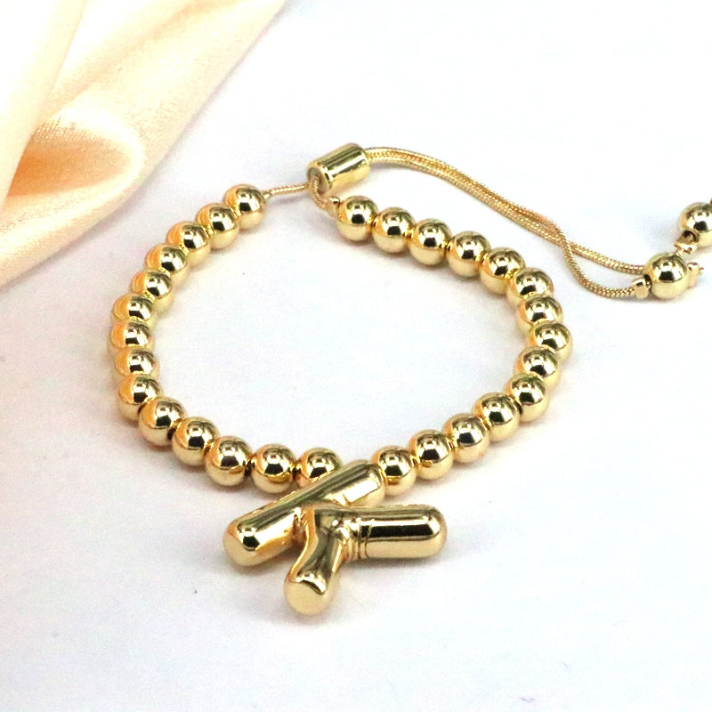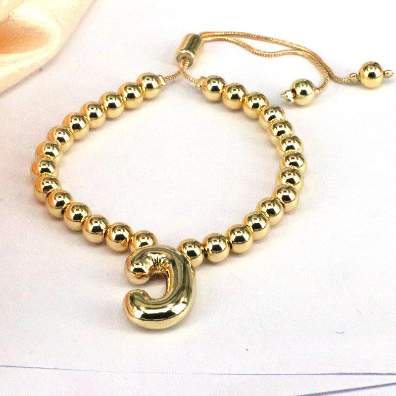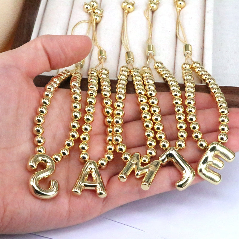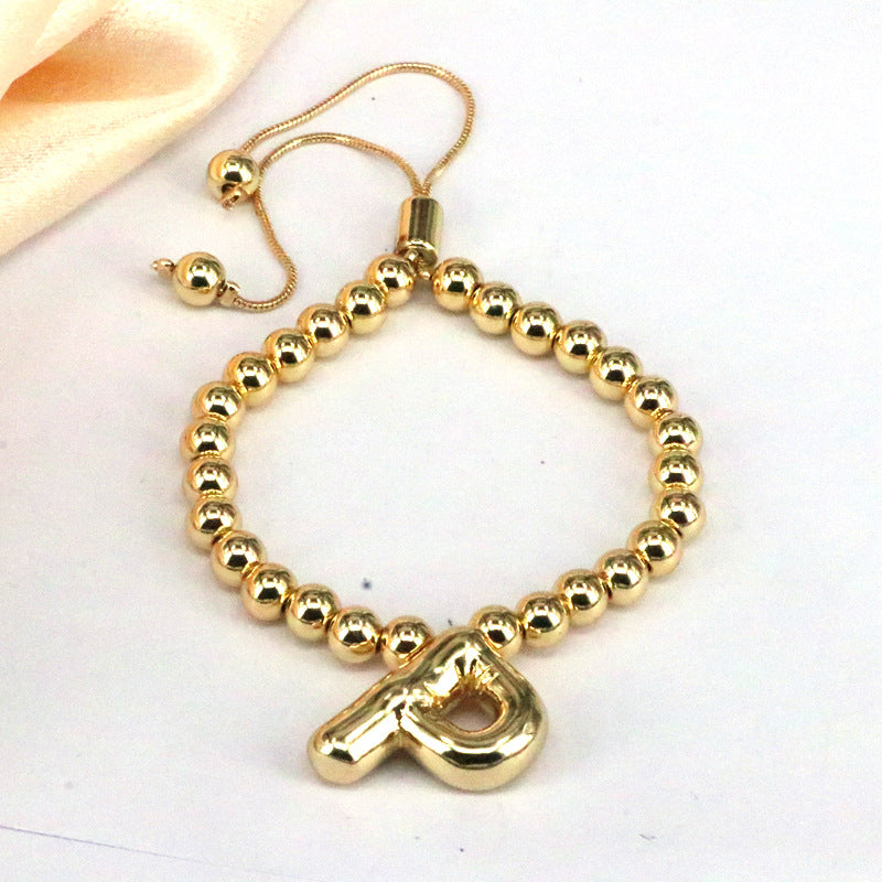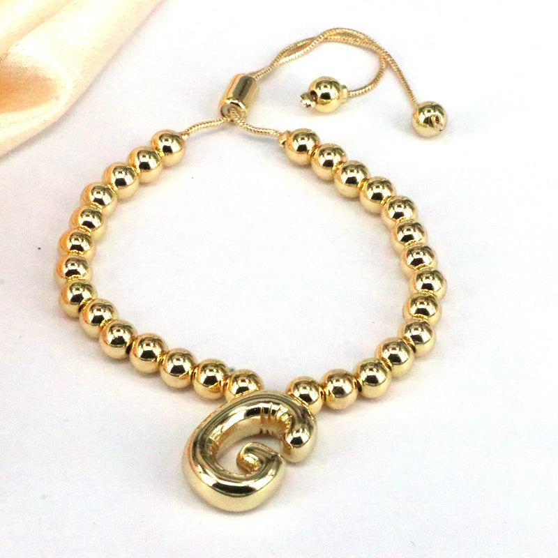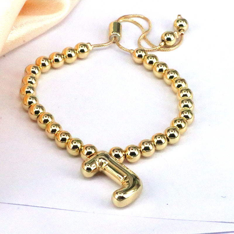 Copper Gold Plated Adjustable Initial Letter Beaded Bracelet for Women