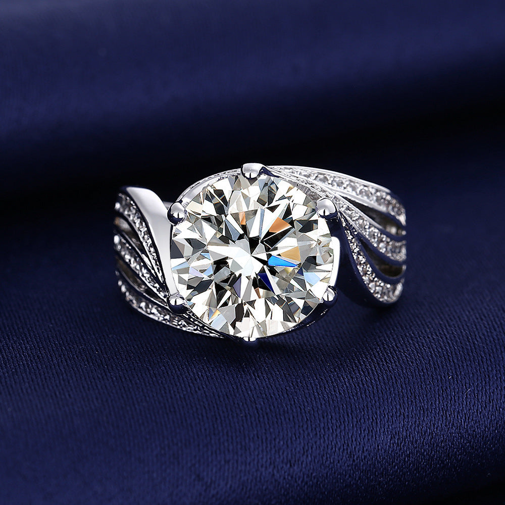 Copper Inlay Round Artificial Diamond Luxury 5 Carat Ring for Women
