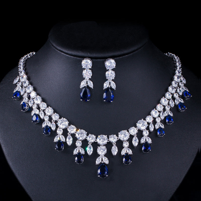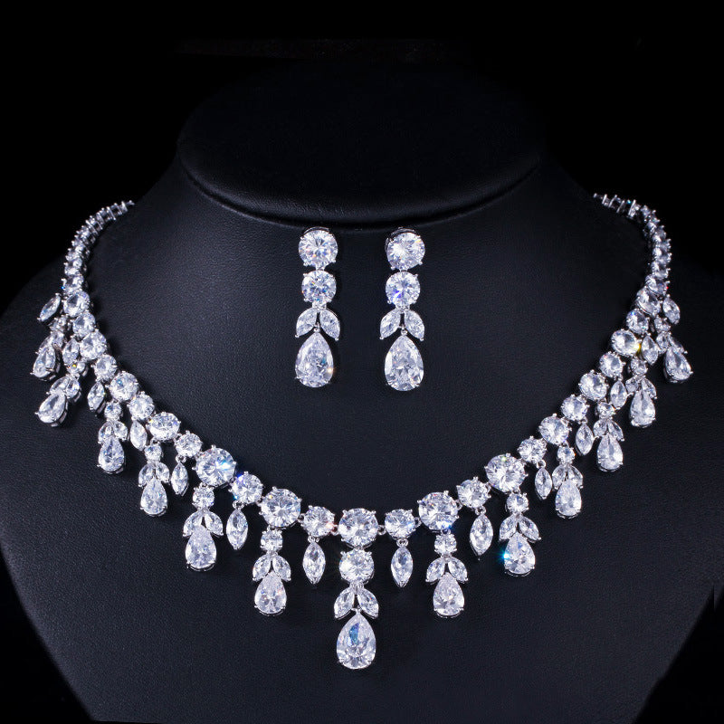 Copper White Gold Plated Bridal Jewelry Set with AAA Zircon Water Droplet Gemstones