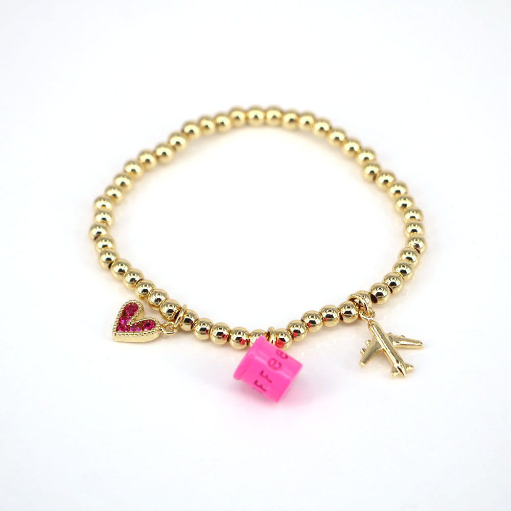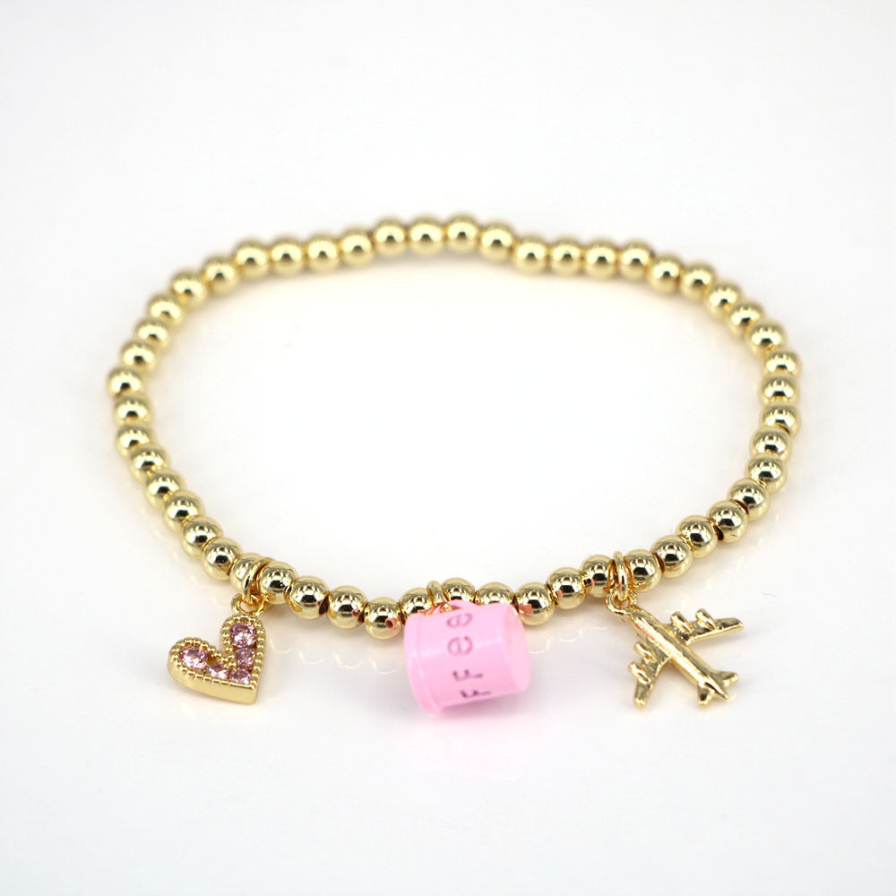 Creative Fun Coffee Cup Airplane Heart Pendant Bead Bracelet