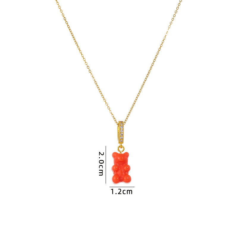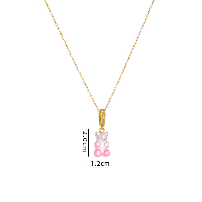 Colorful Bear Resin Zircon Pendant Necklace for Women and Men