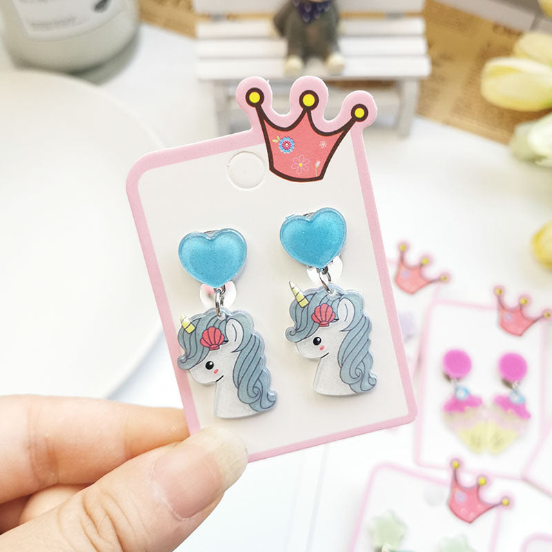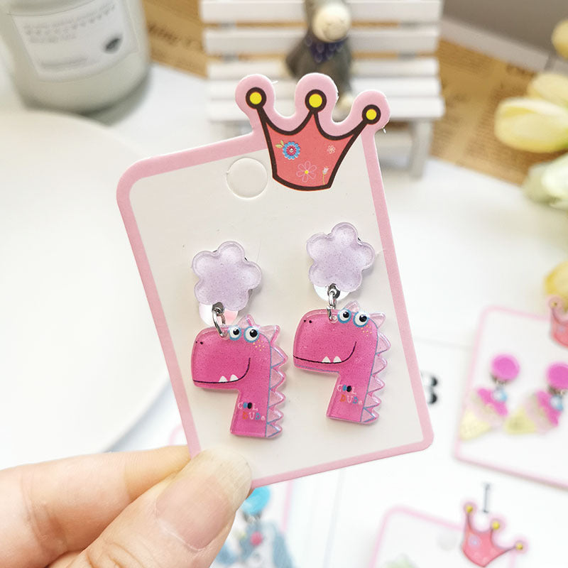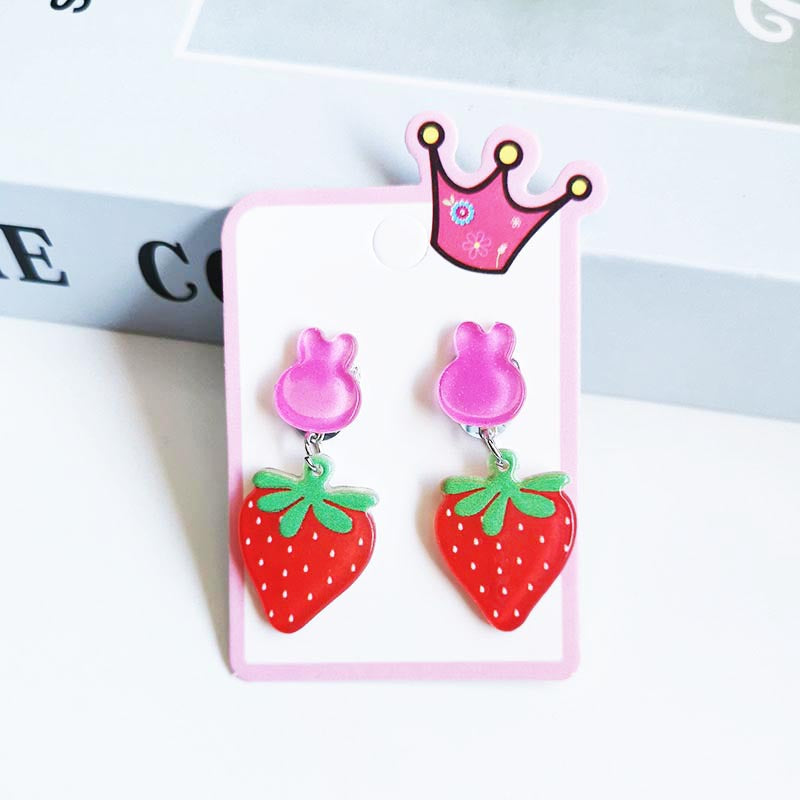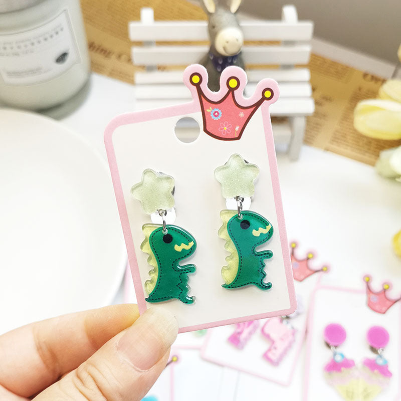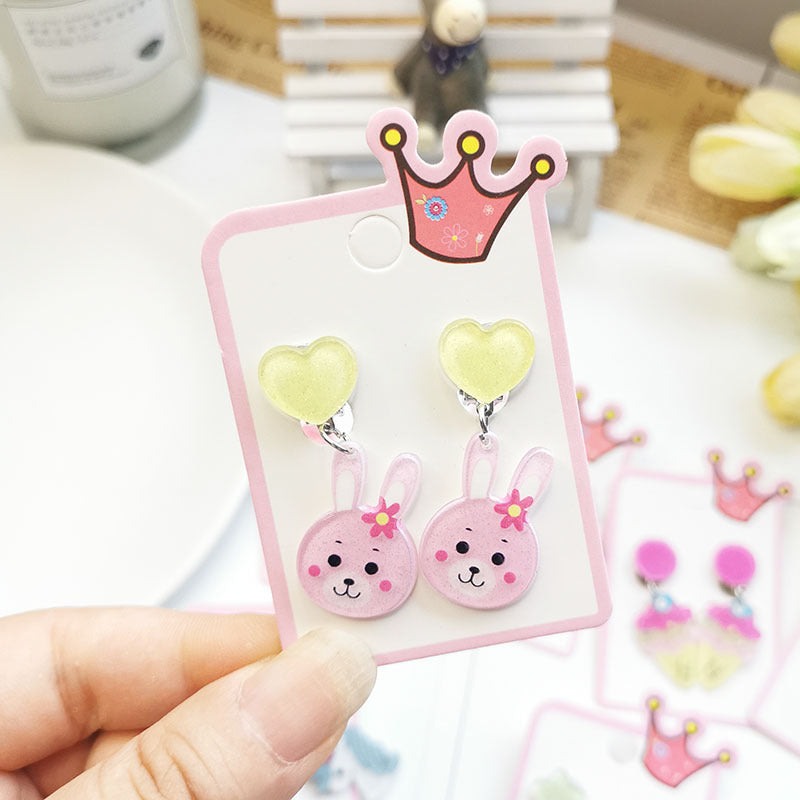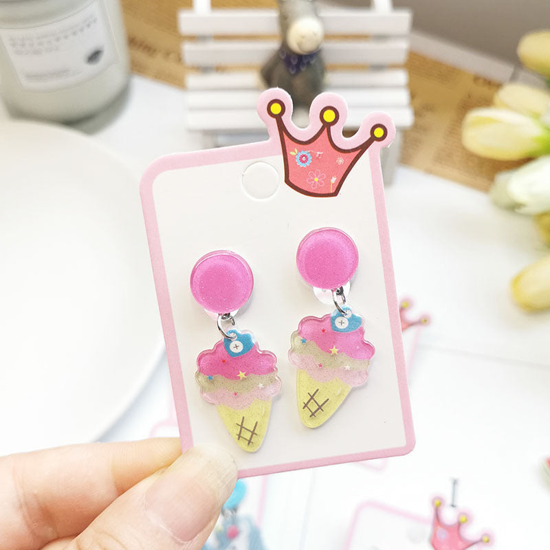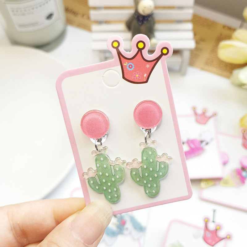 Cute Cactus Rabbit Ice Cream Acrylic Clip-On Earrings for Girls