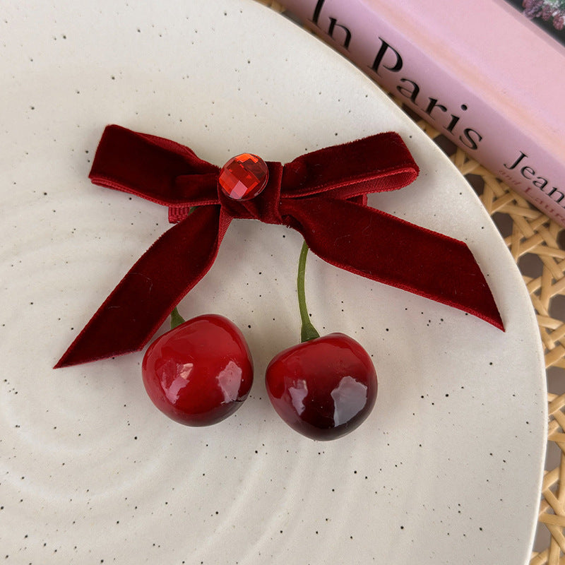 Cherry Velvet Bowknot Hair Clip