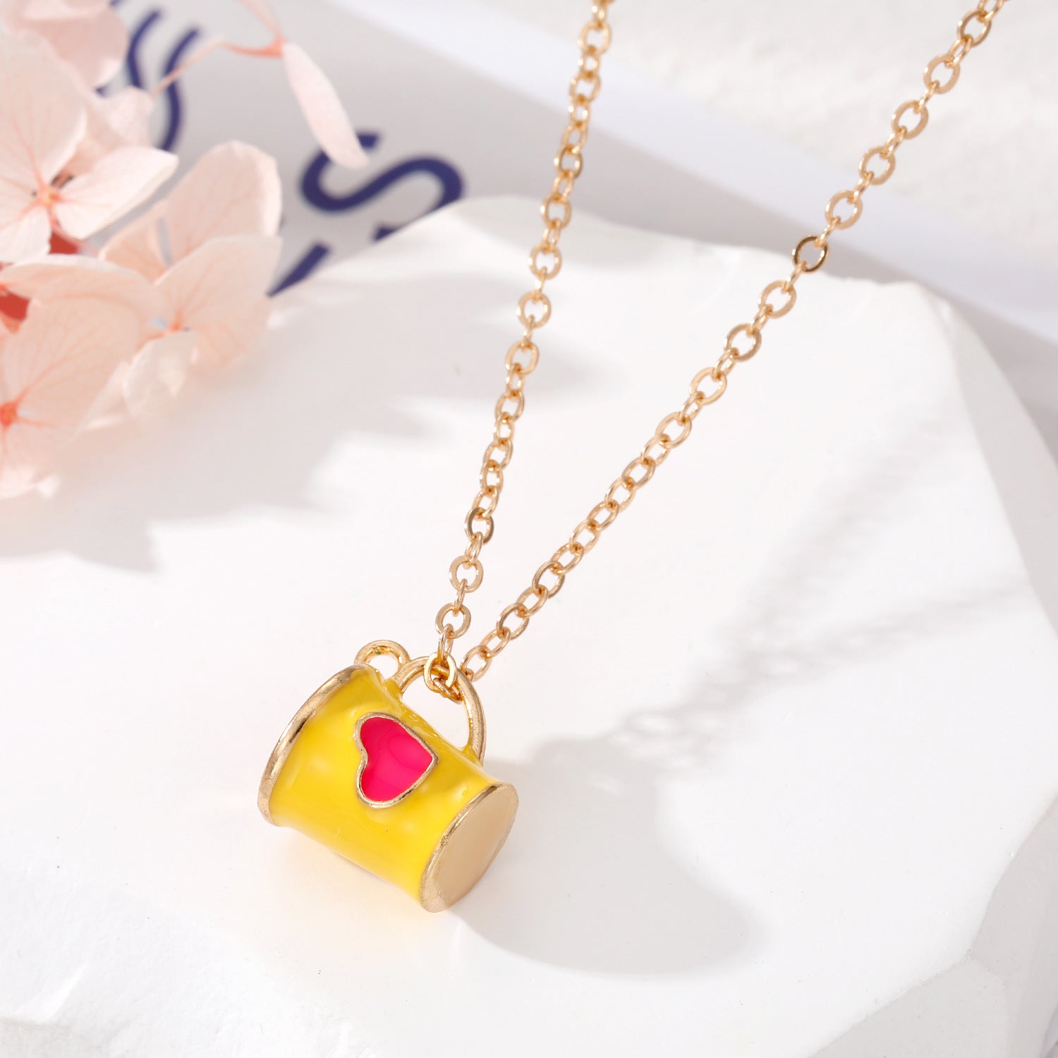 Cute Heart Shape Alloy Plated Pendant Necklace with Colorful Geometric Charm