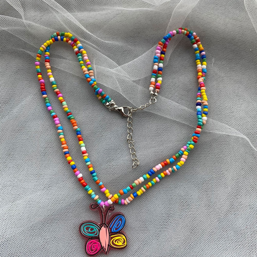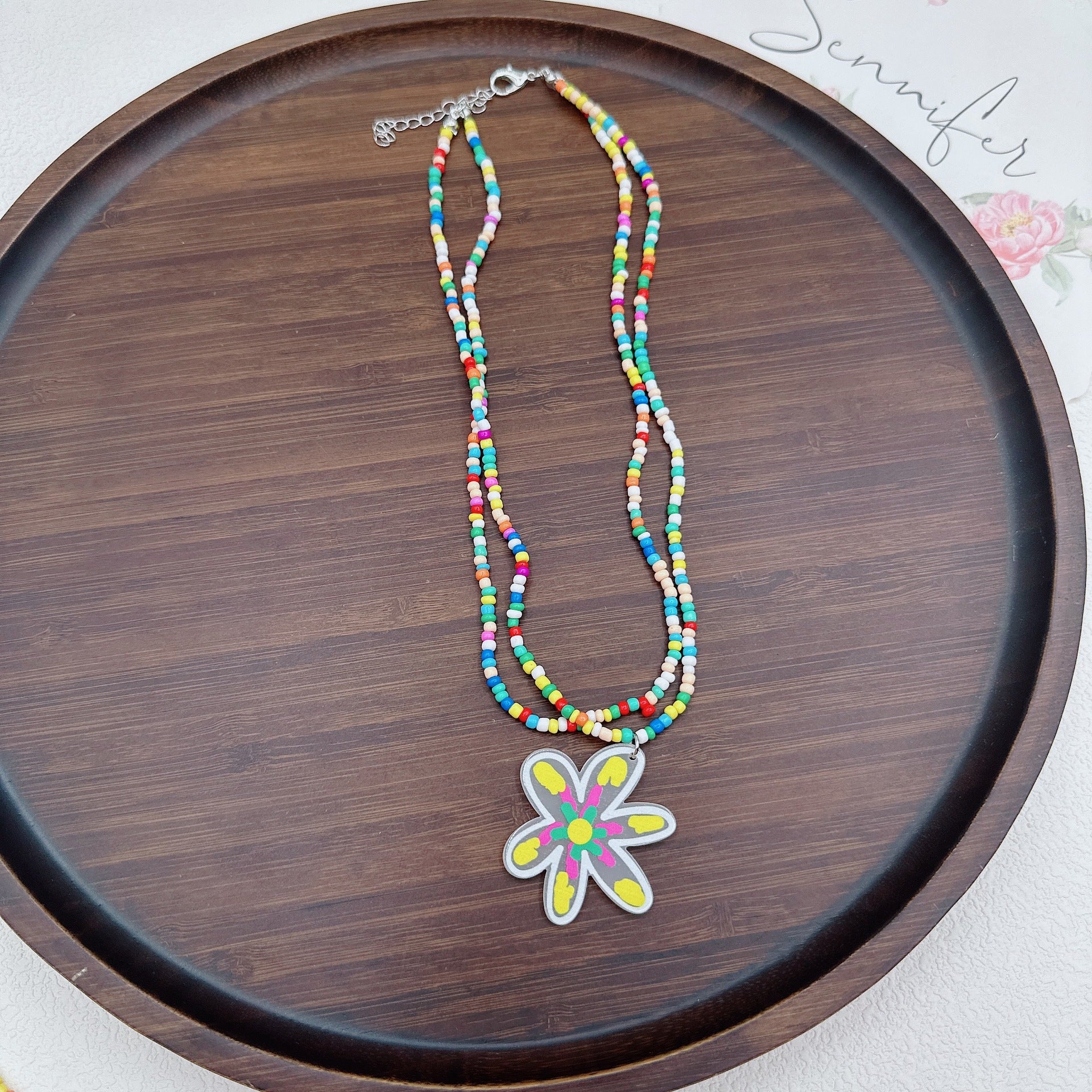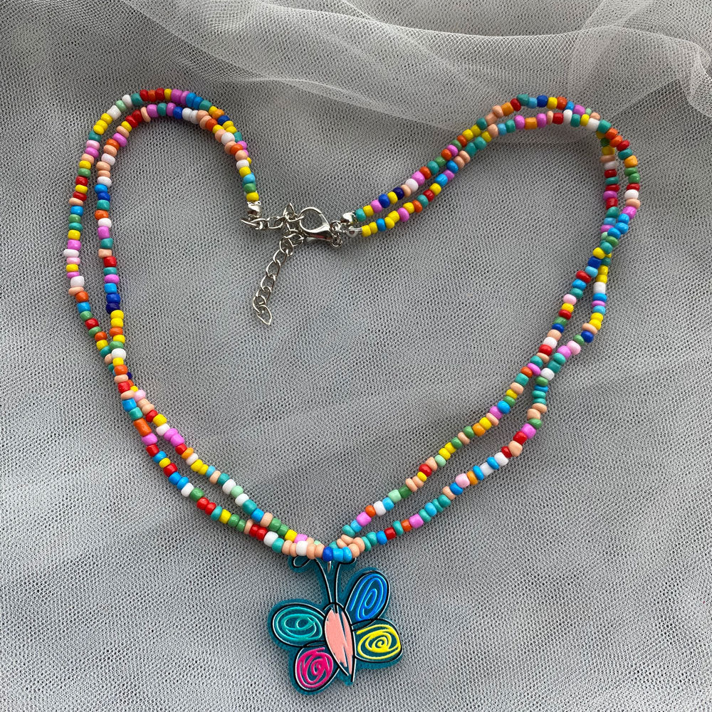 Colorful Flower Butterfly Beaded Pendant Necklace for Women