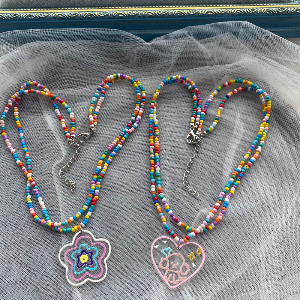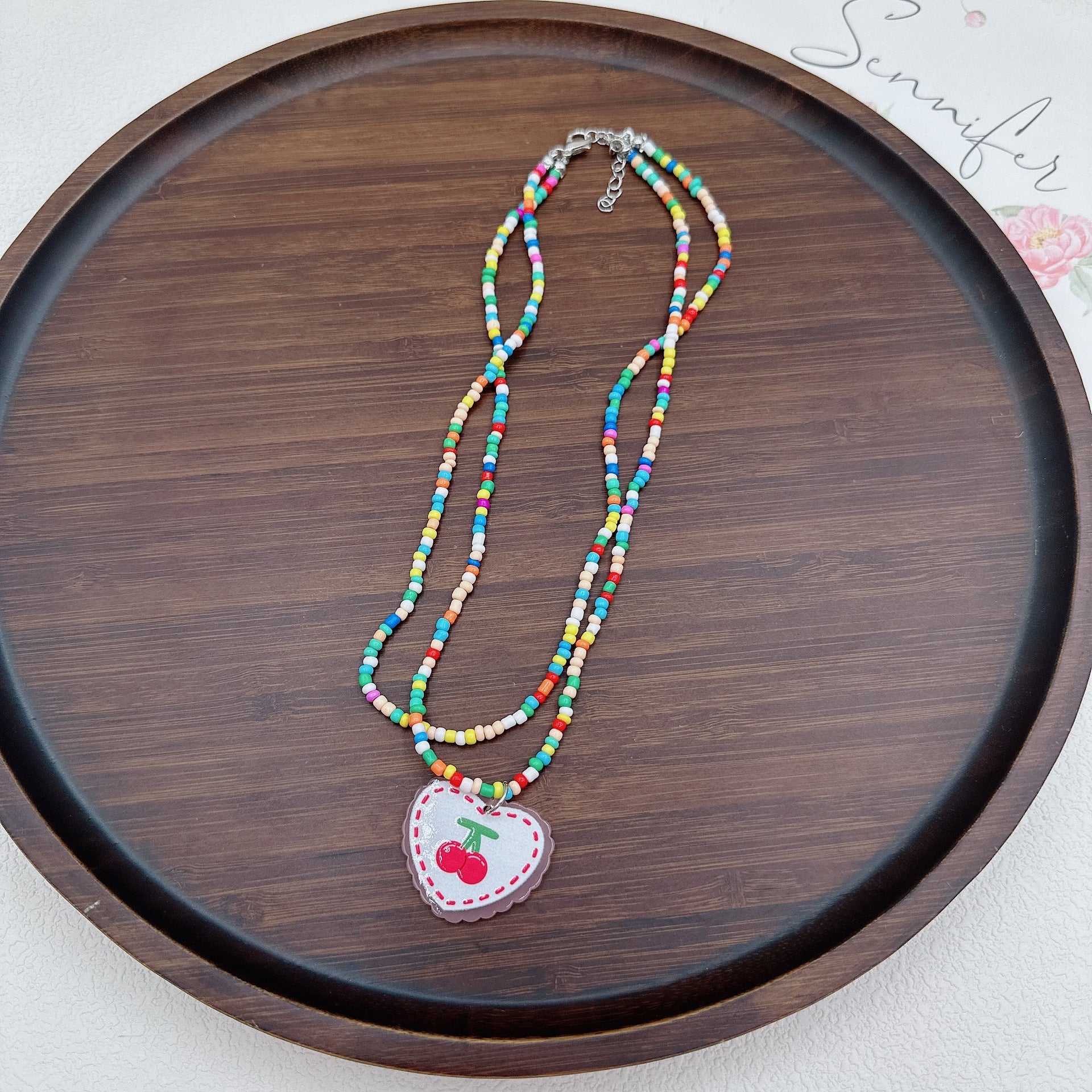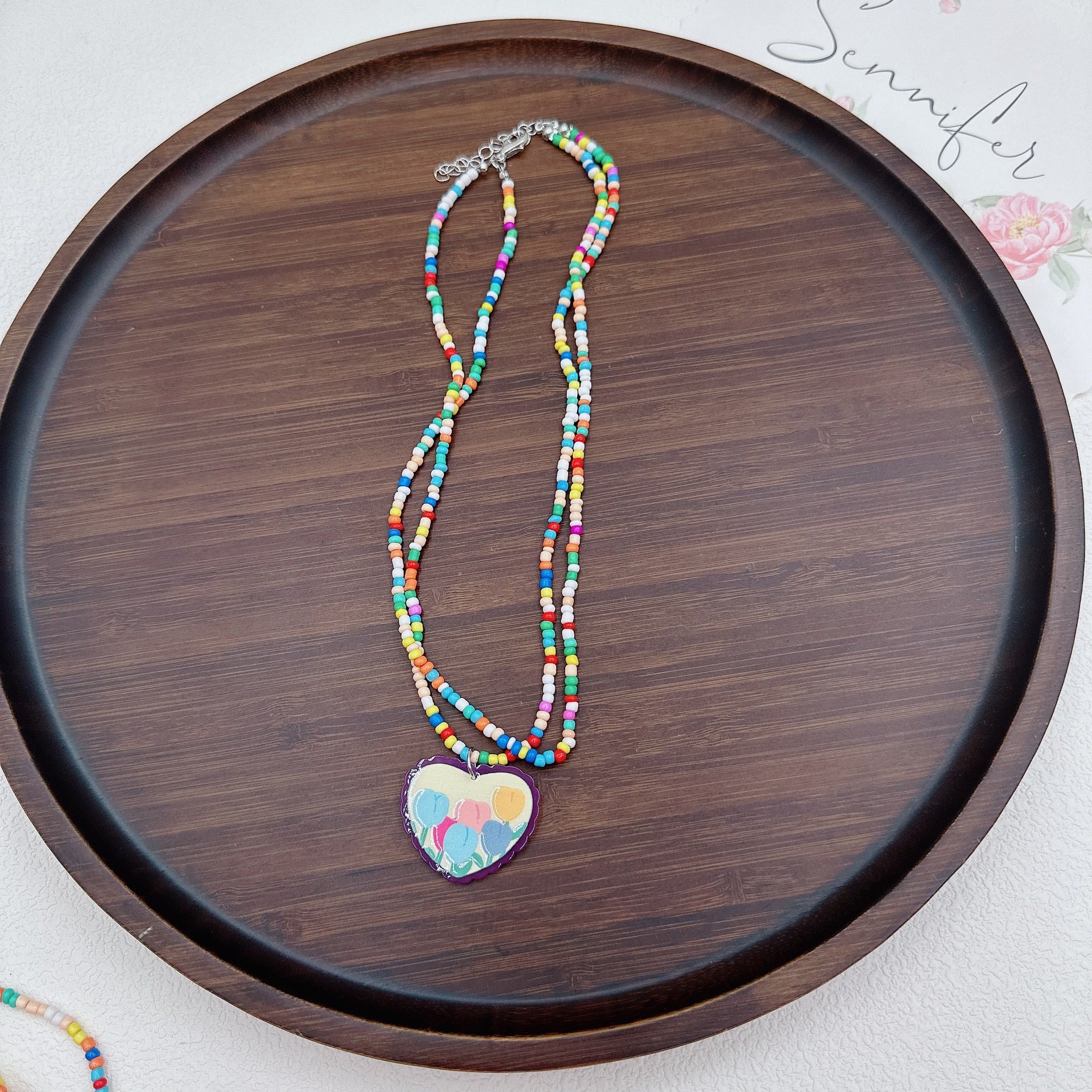 Colorful Flower Butterfly Beaded Pendant Necklace for Women