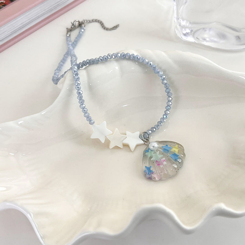 Pentagram Shell Beaded Resin Inlay Pearl Choker Necklace for Women