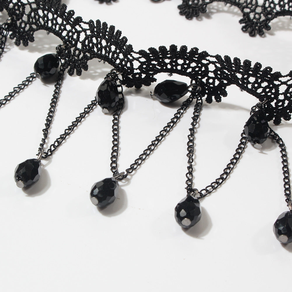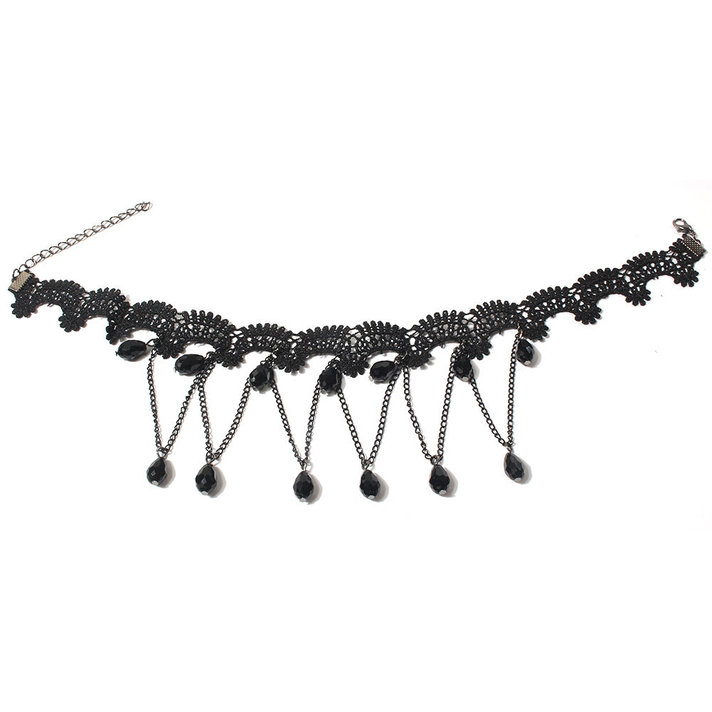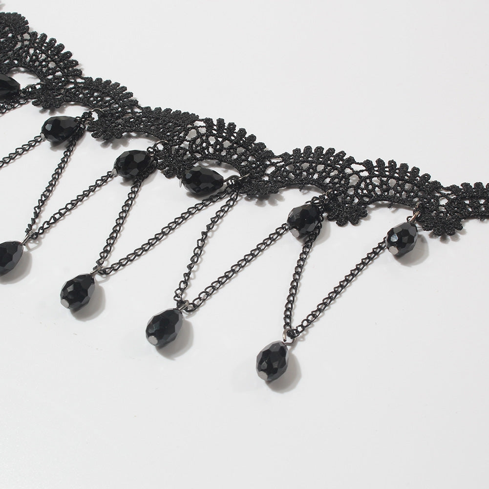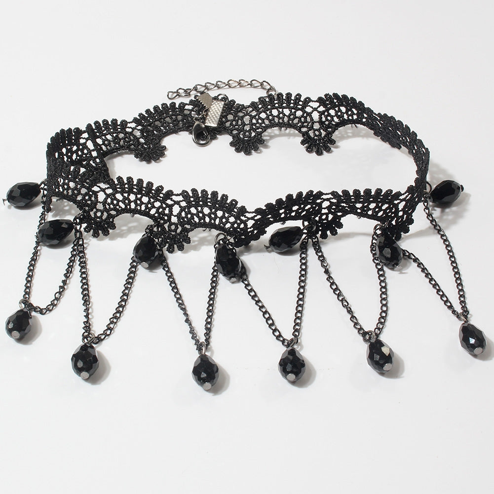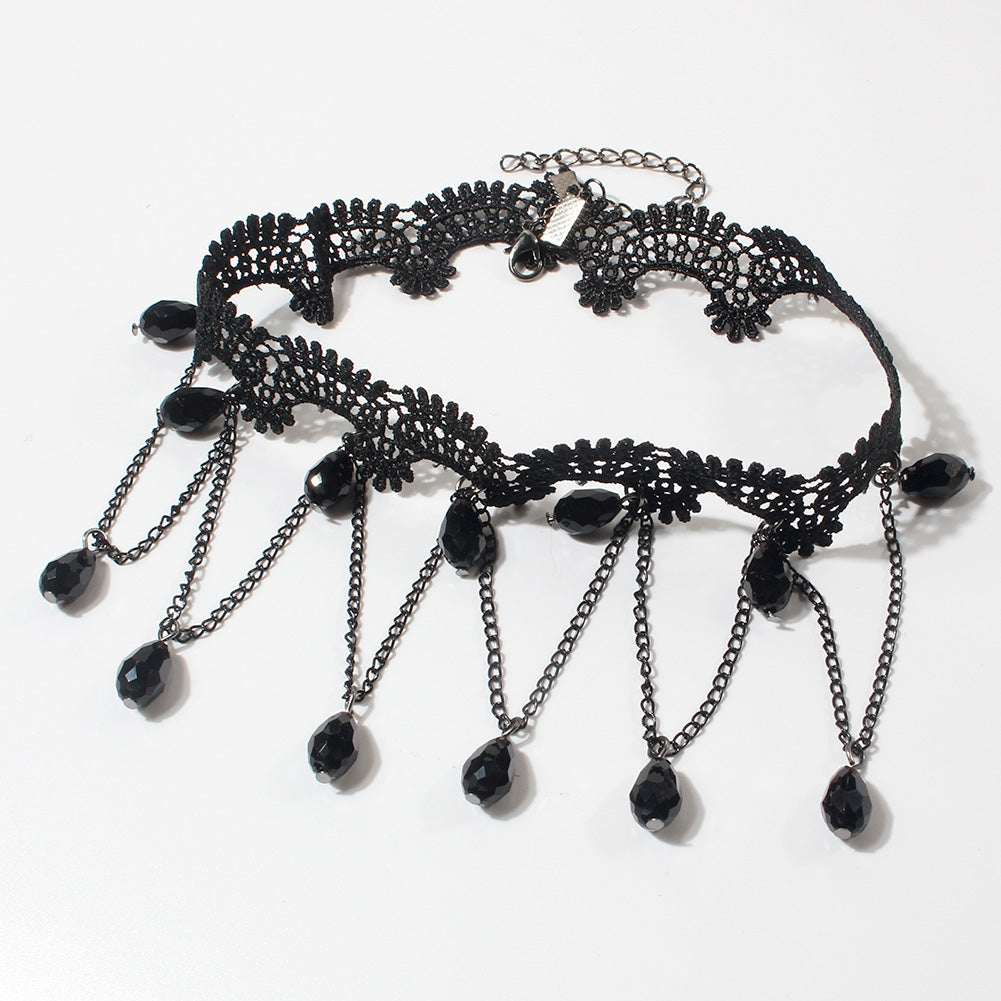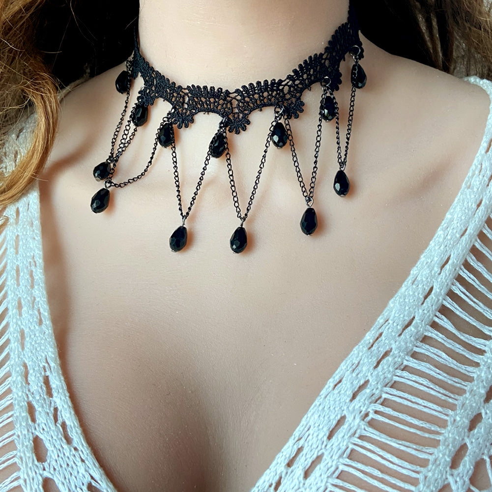 Cute Queen Water Droplets Tassel Lace Adjustable Glass Pendant Women's Choker Necklace