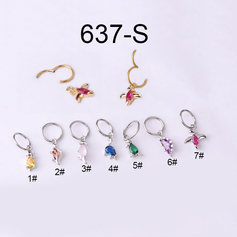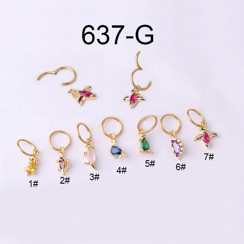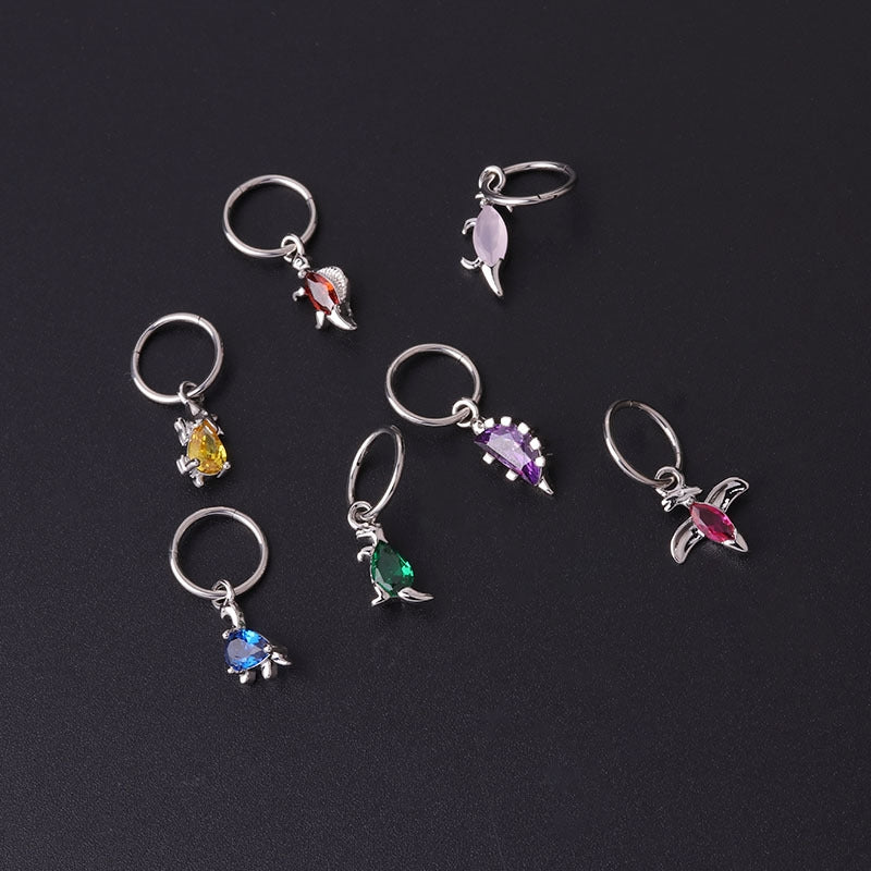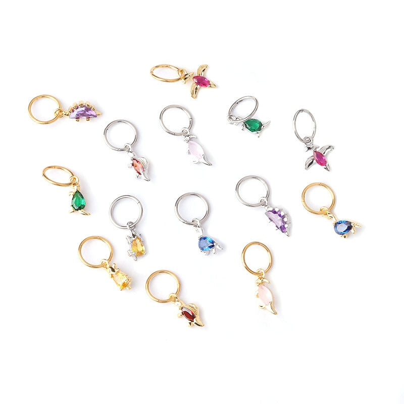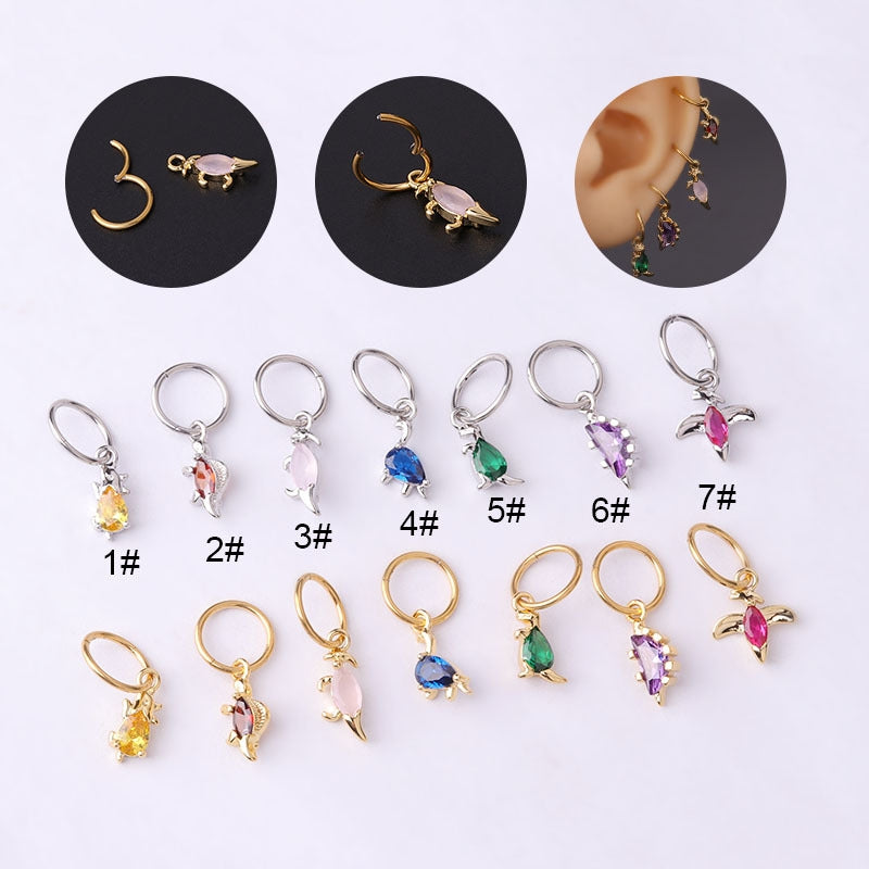 Fashion Animal Ear Cartilage Rings & Studs with Colorful Zircon Dinosaur Pendant, 316 Stainless Steel Copper Plated, 18g Piercing Jewelry