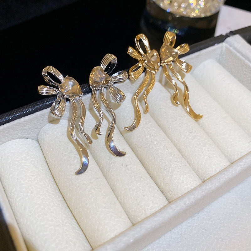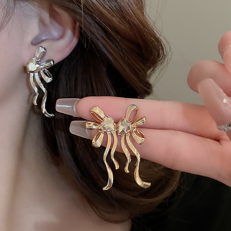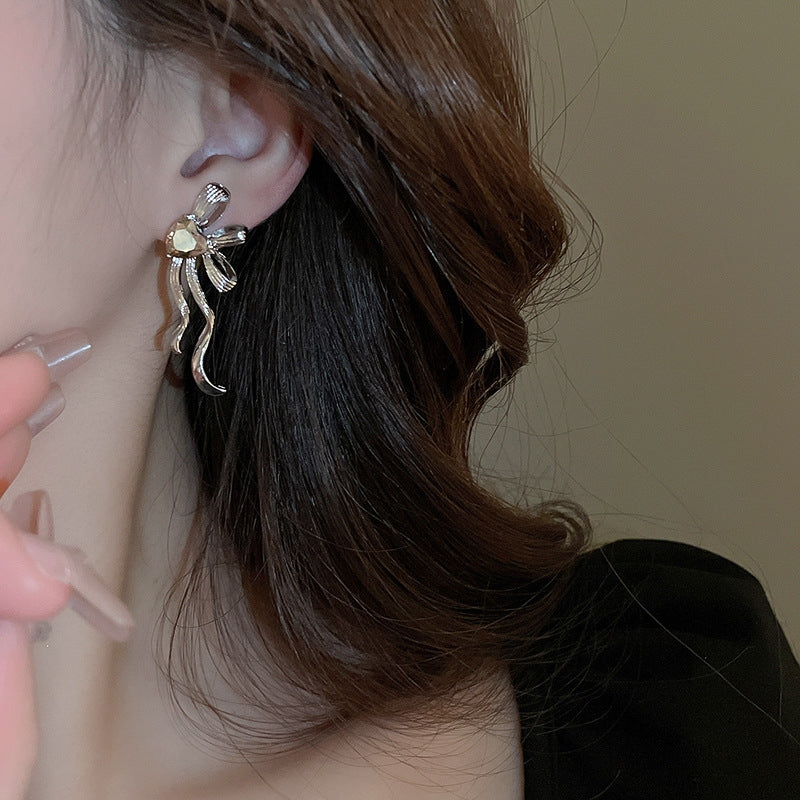Elegant Bow Knot Pearl Drop Earrings - 2024 Silver Alloy Luxury Design