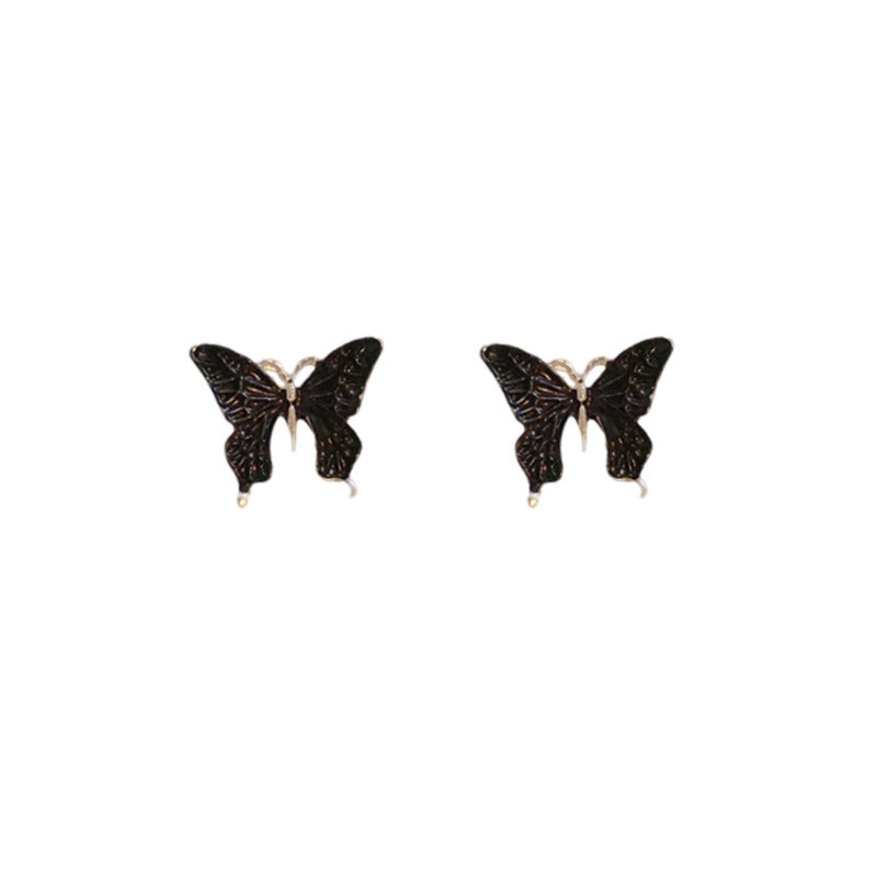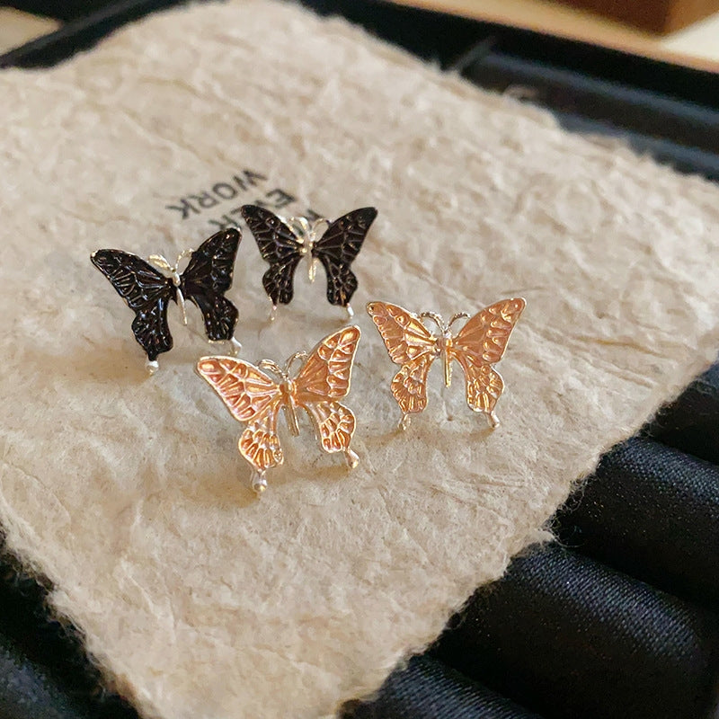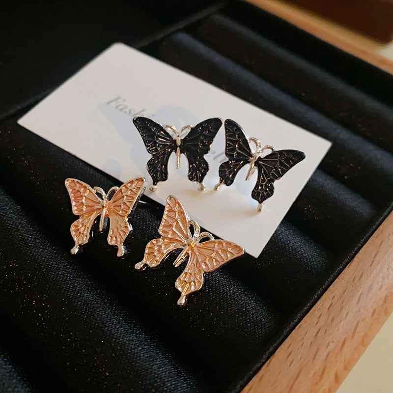 Elegant Butterfly Enamel Alloy Stud Earrings - Silver Needle Dripping Oil Design