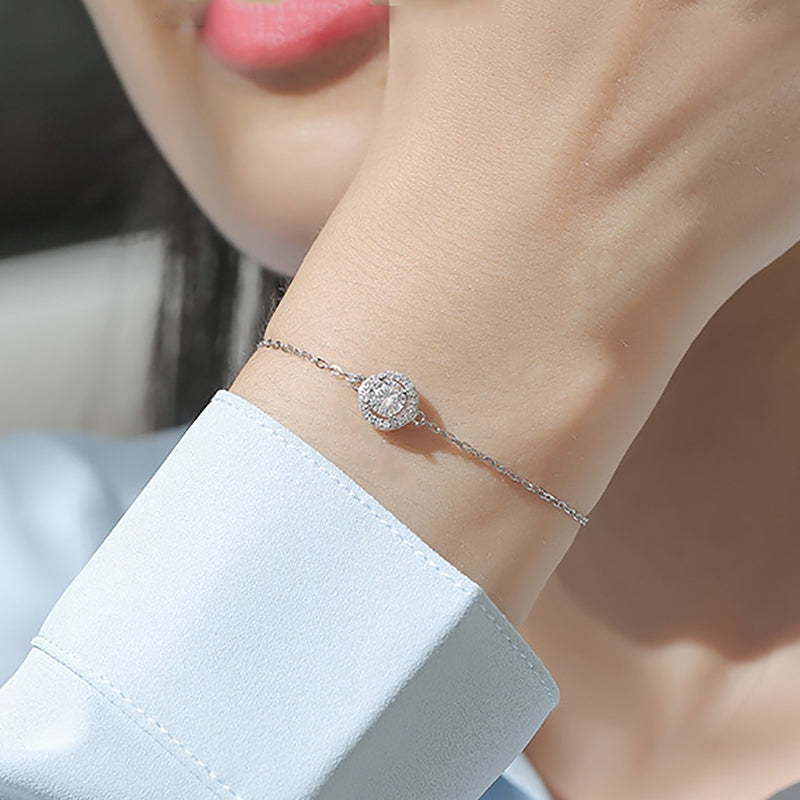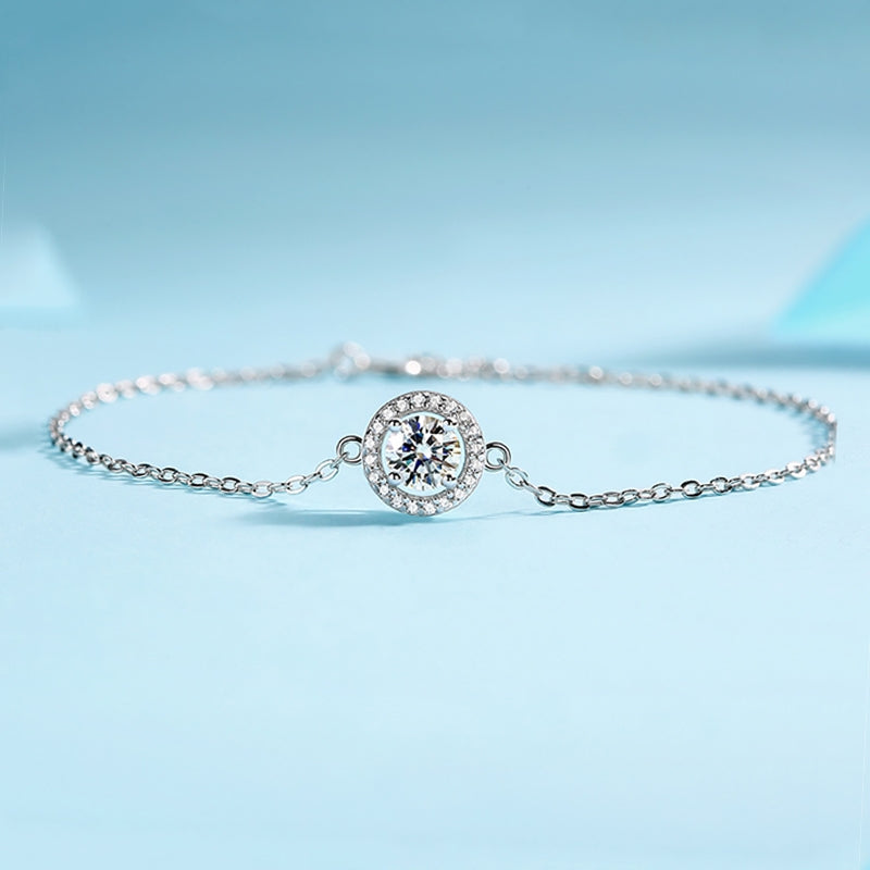 Elegant Round Moissanite 18k Gold Plated Sterling Silver Bracelet