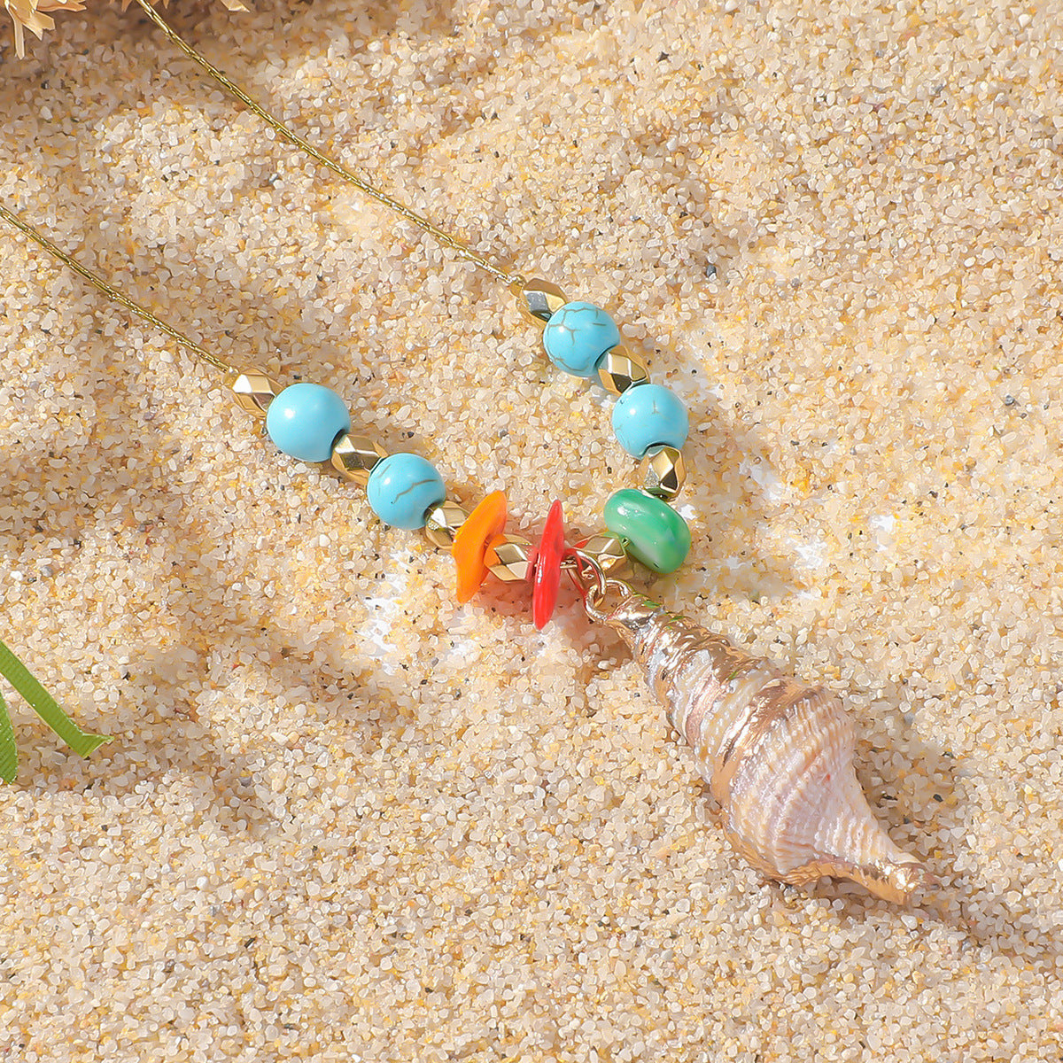 Elegant Shell Pendant Necklace with Turquoise Beads and Alloy Chain