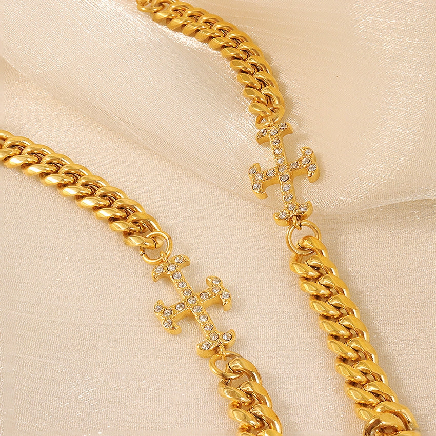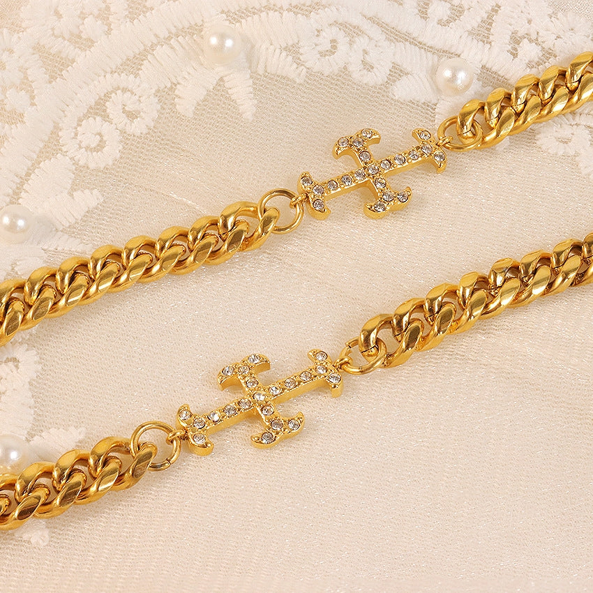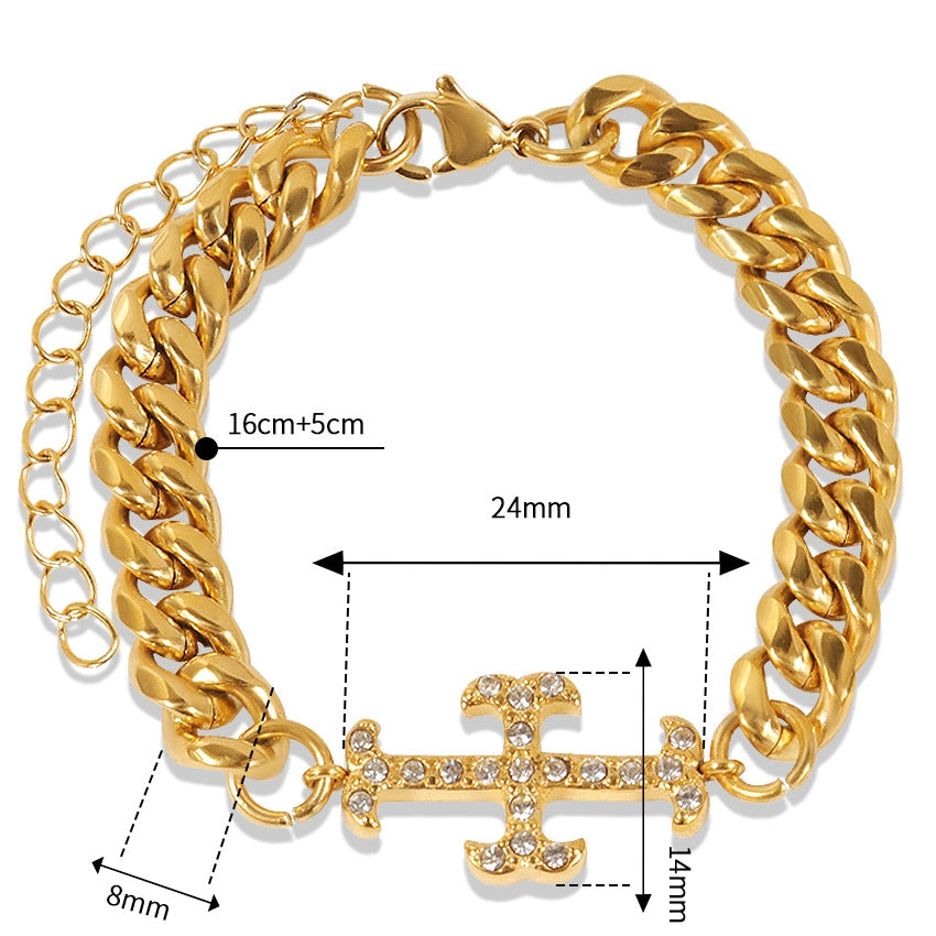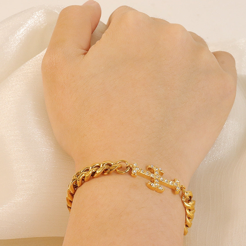 Elegant Stainless Steel Crystal Accent Bracelet for Women - Minimalist Chic Design