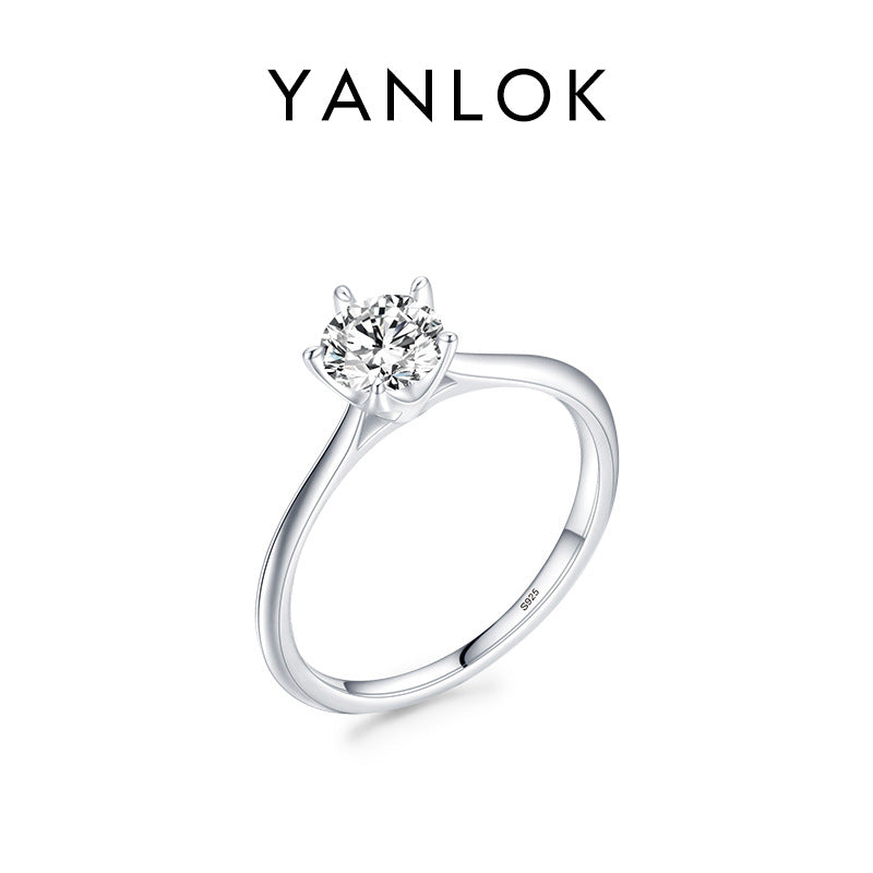 Elegant Zircon Inlay Sterling Silver Rhodium Plated Ring