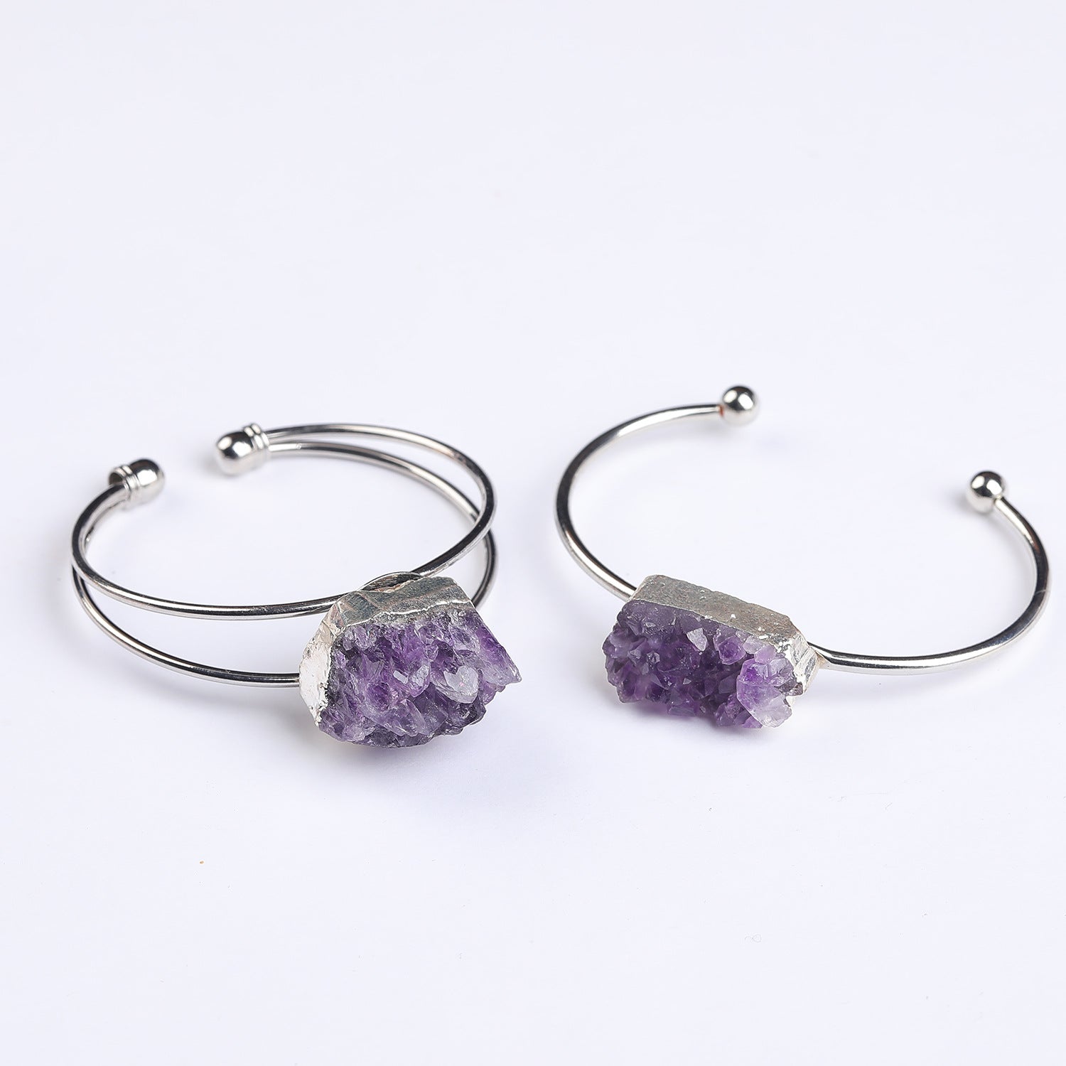 Elegant Geometric Gold Plated Crystal Amethyst Adjustable Bangle Bracelet