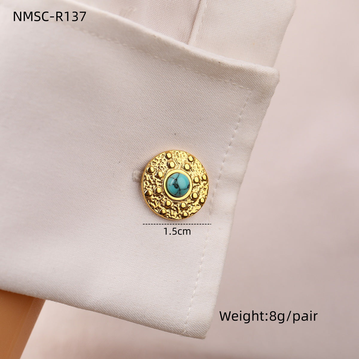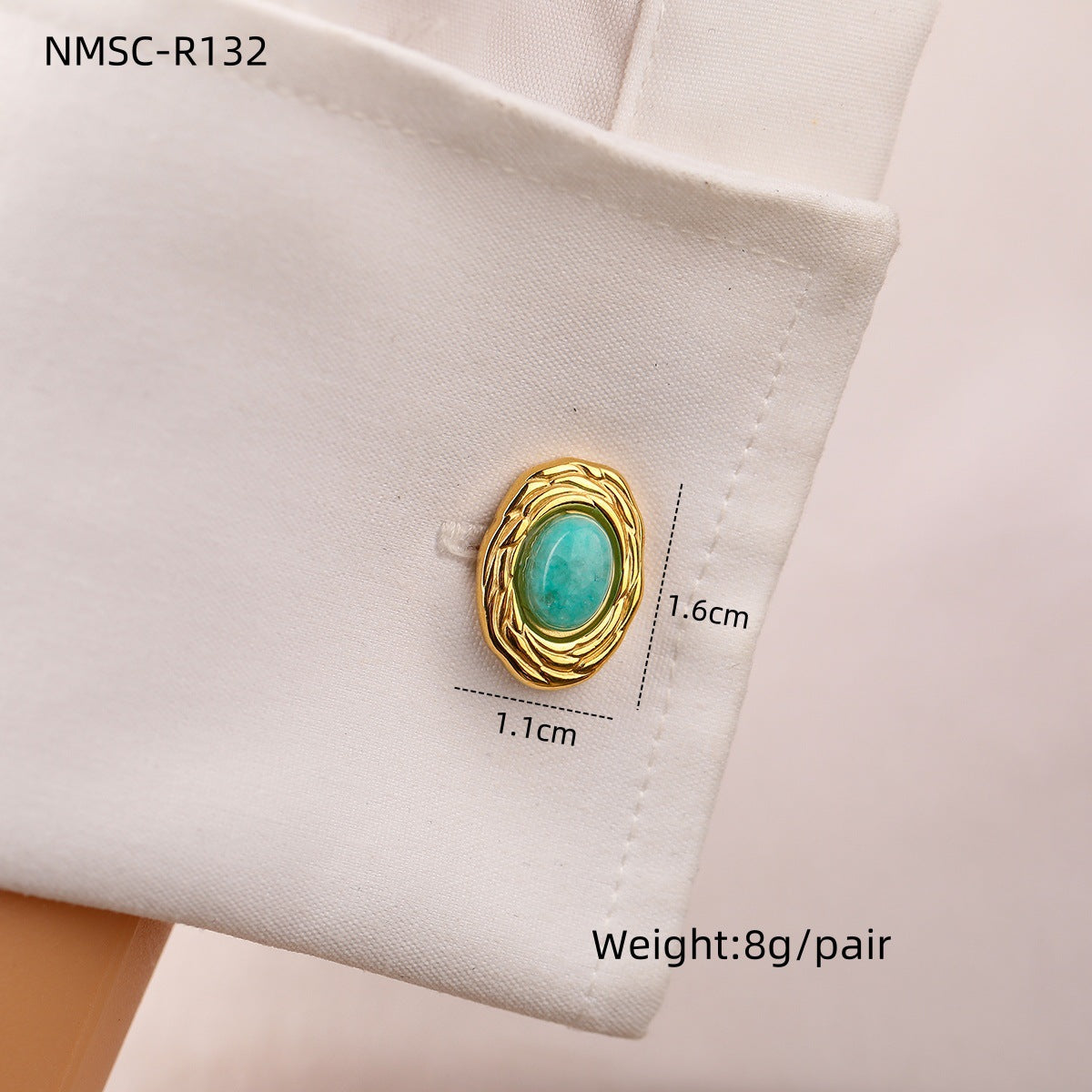 Elegant Turquoise Geometric Stainless Steel Unisex Cufflinks