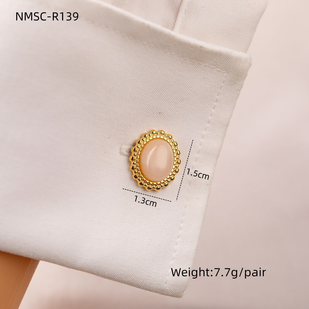 NMSC-R139 Pink Quartz Cufflinks / 18K