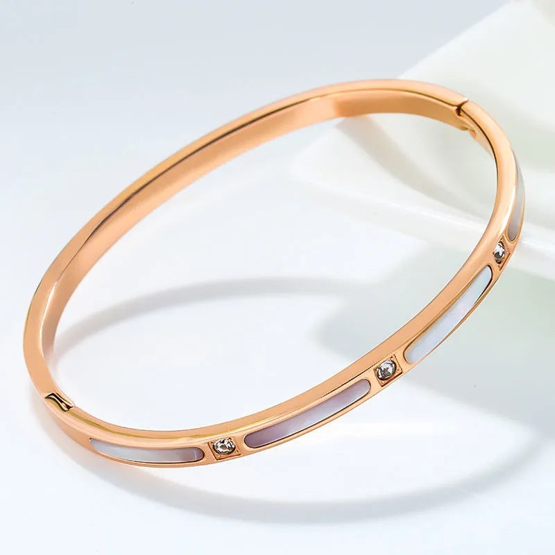 Elegant Geometric Rose Gold Plated Titanium Steel Shell Bangle Bracelet