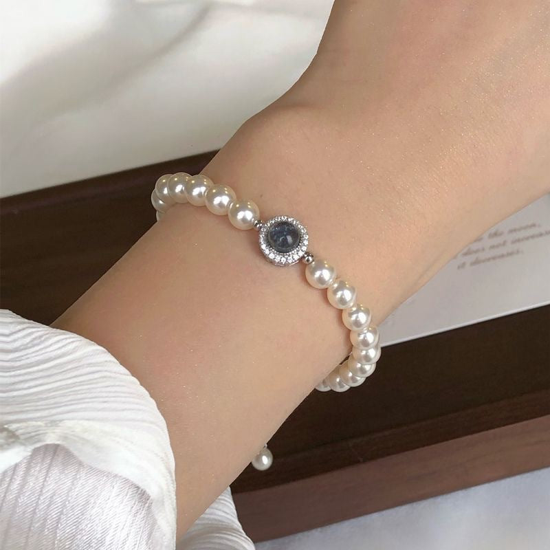 Elegant Geometric Imitation Pearl Aquamarine Women's Bracelet