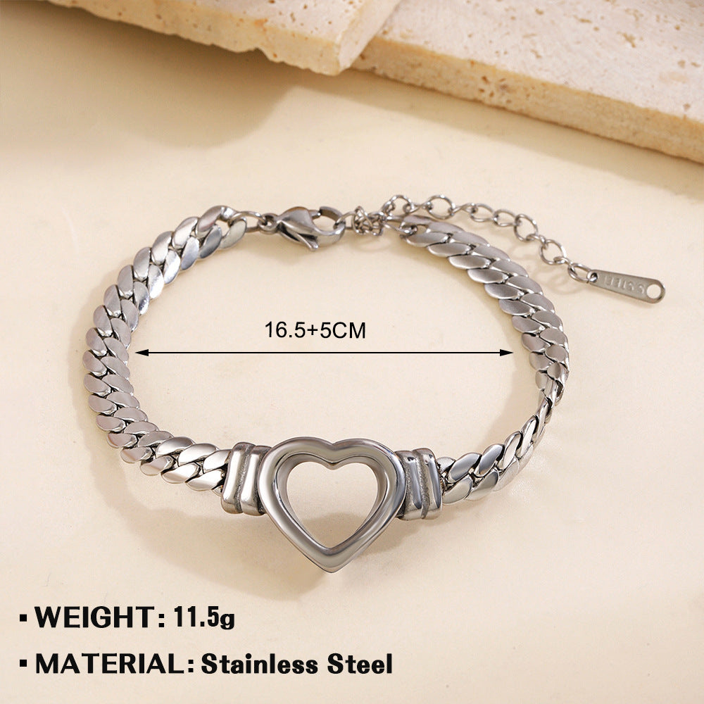 Elegant Heart-Shaped Stainless Steel Hollow Bracelet