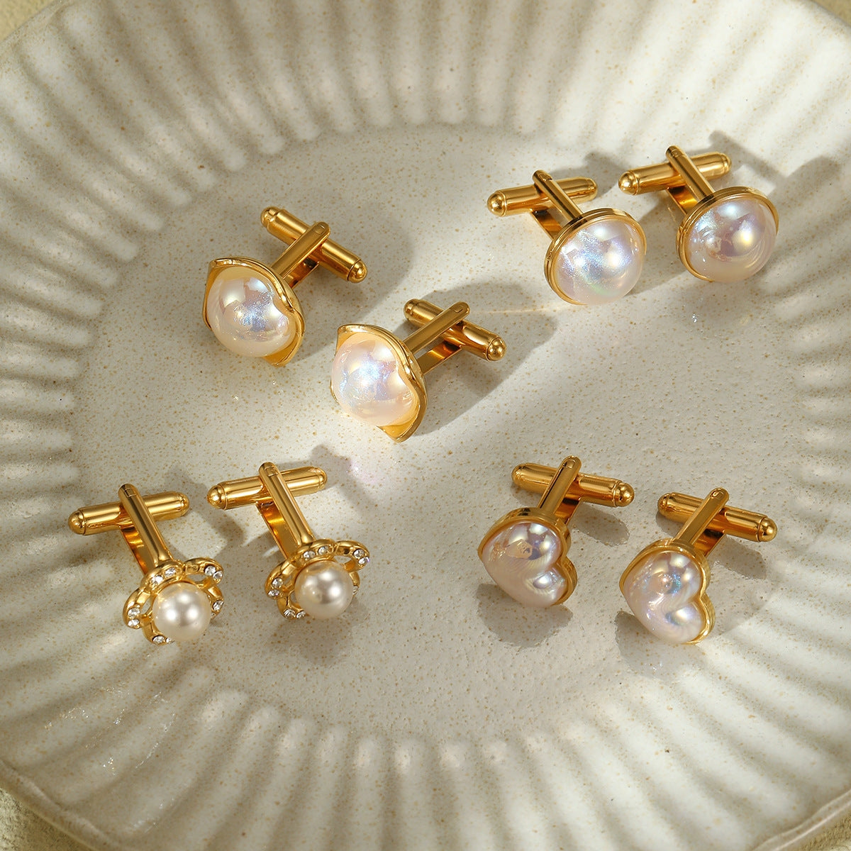 Elegant Pearl Heart Stainless Steel Cufflinks for Unisex French Shirt