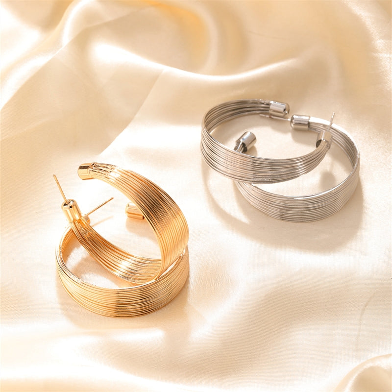 Elegant Korean C Shape Geometric Gold Plated Ear Studs - Light Luxury Niche Design Earrings