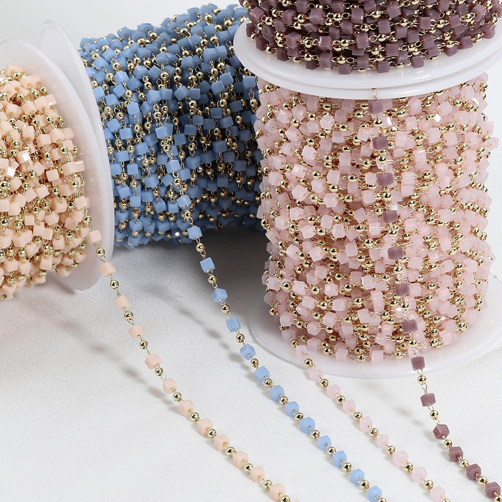 Transparent powder beads-KC gold chain / 1 meter/bag