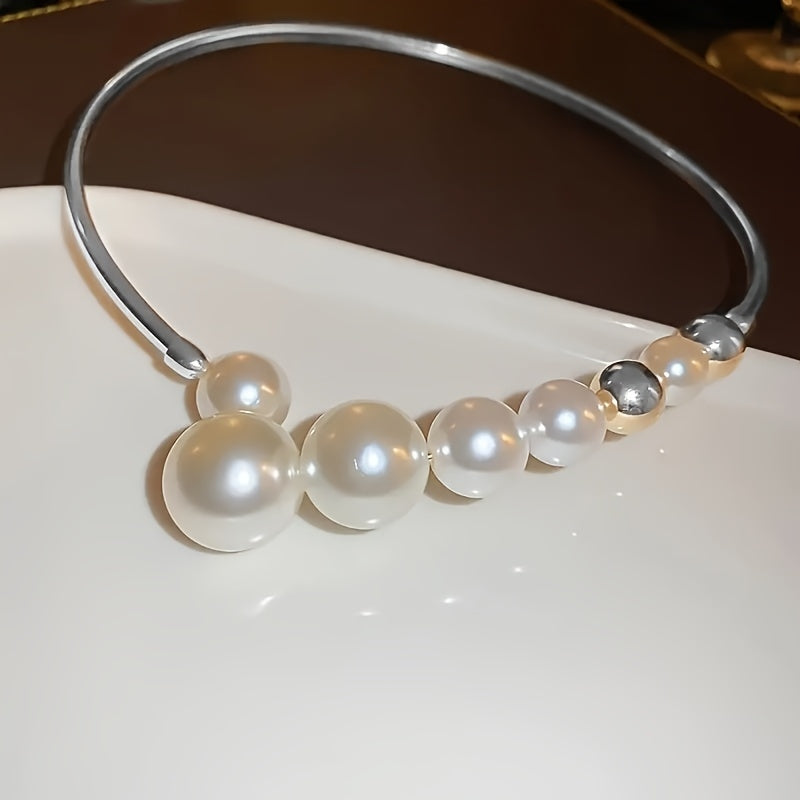 Elegant Geometric Acrylic Iron Choker Necklace with Faux Pearl Accents