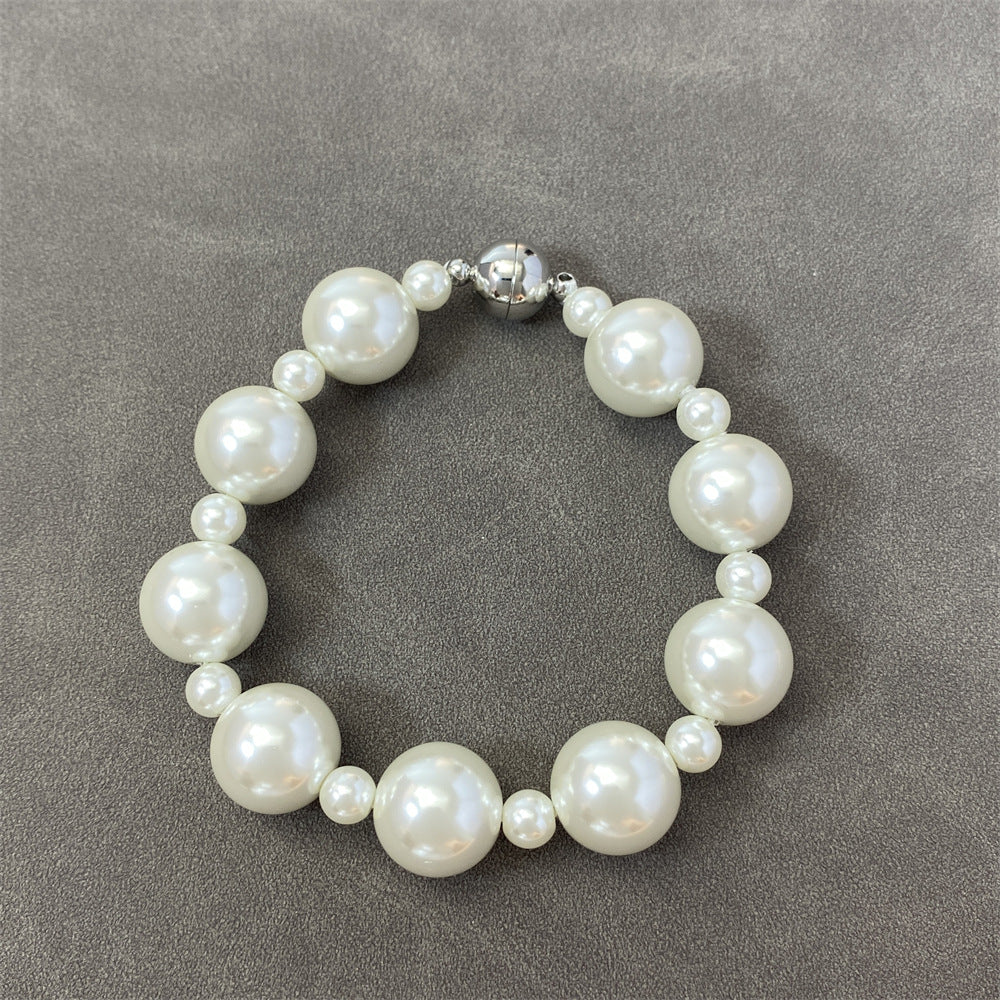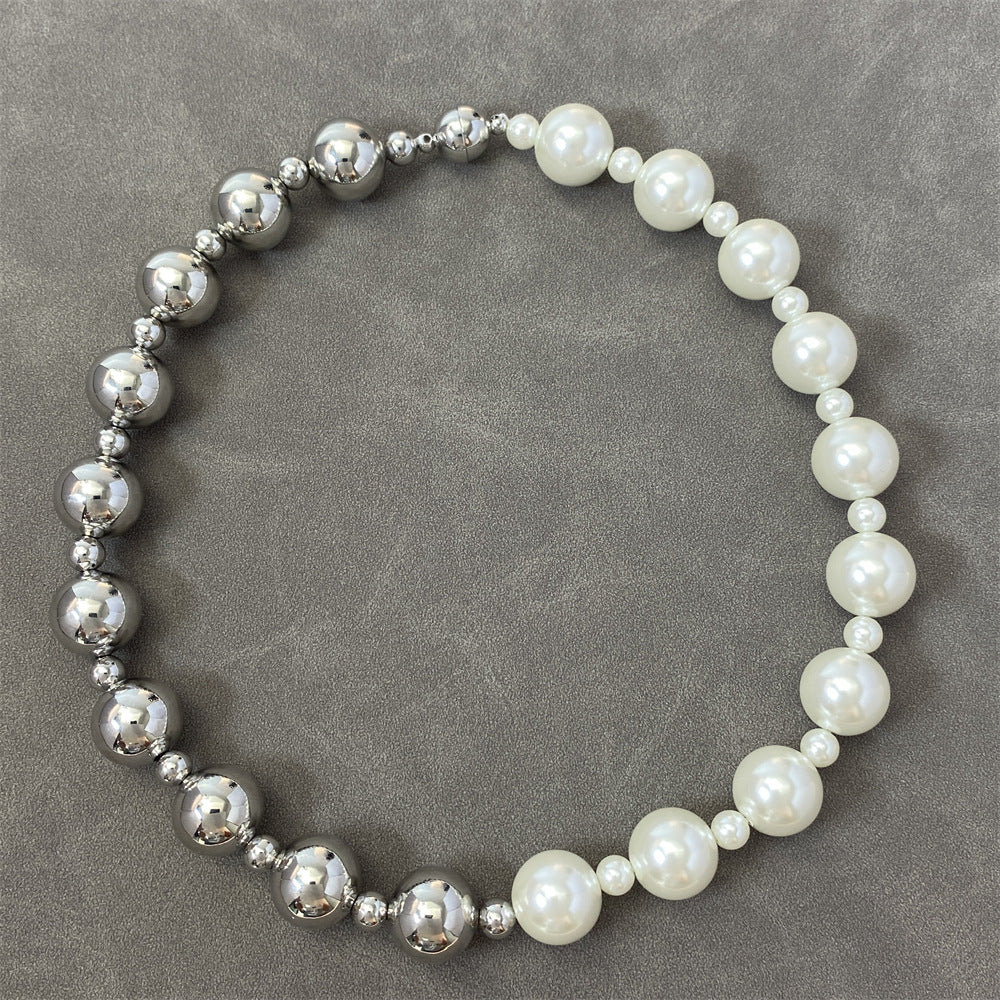 Elegant Geometric Glass Pearl Beaded Necklace with Magnetic Clasp