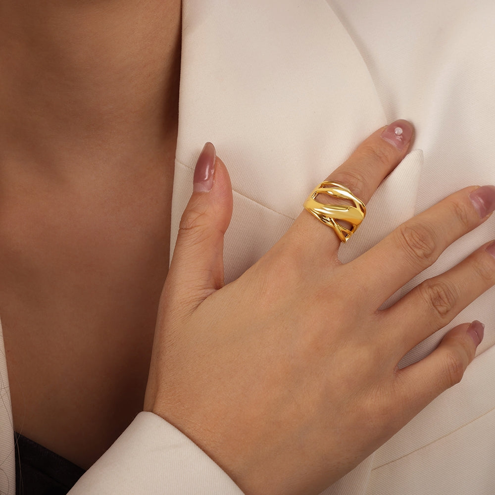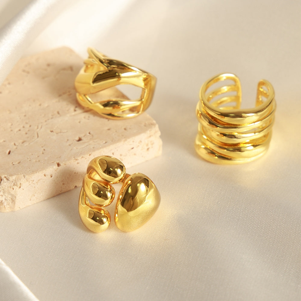 Elegant Geometric 18K Gold Plated Open Copper Ring