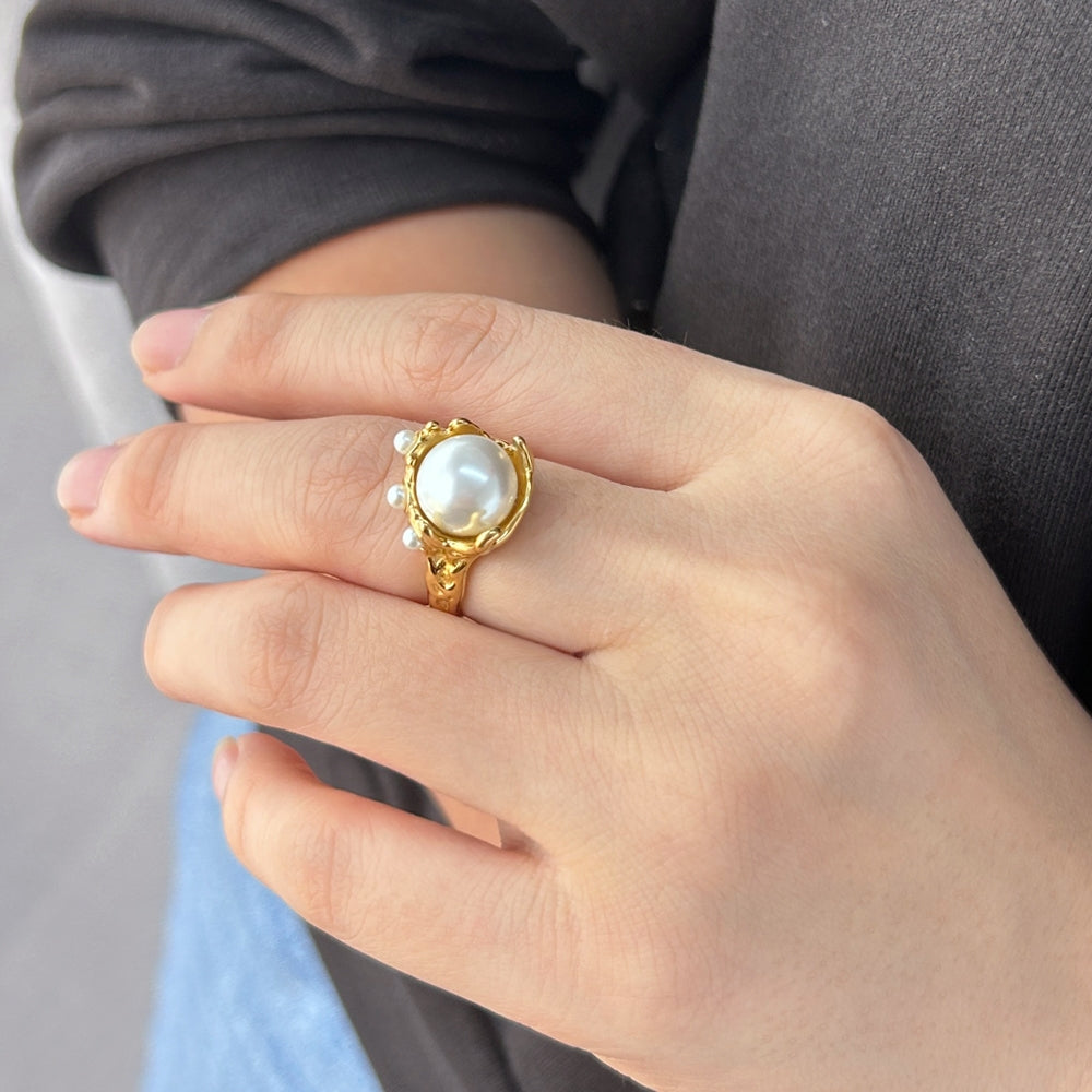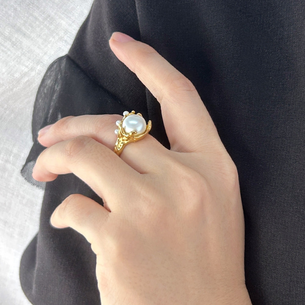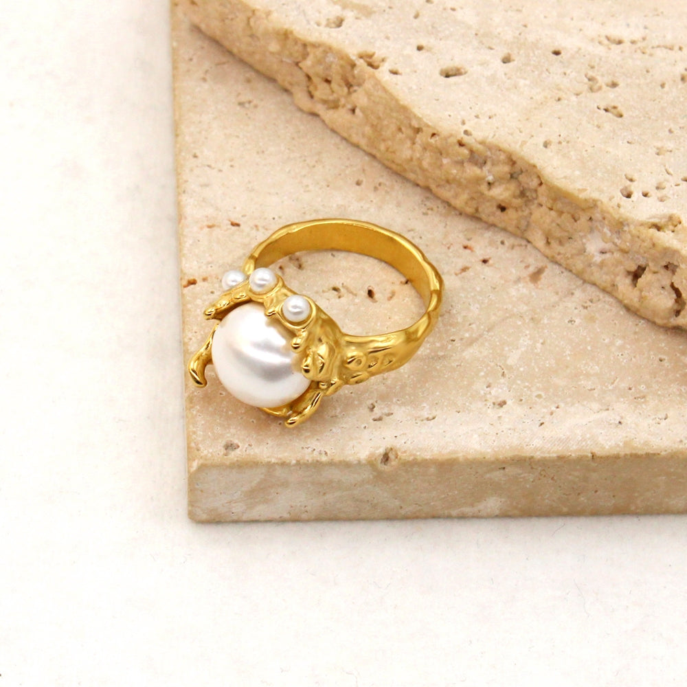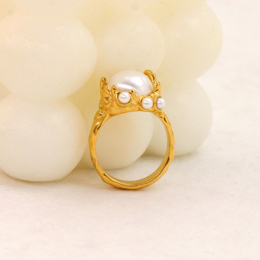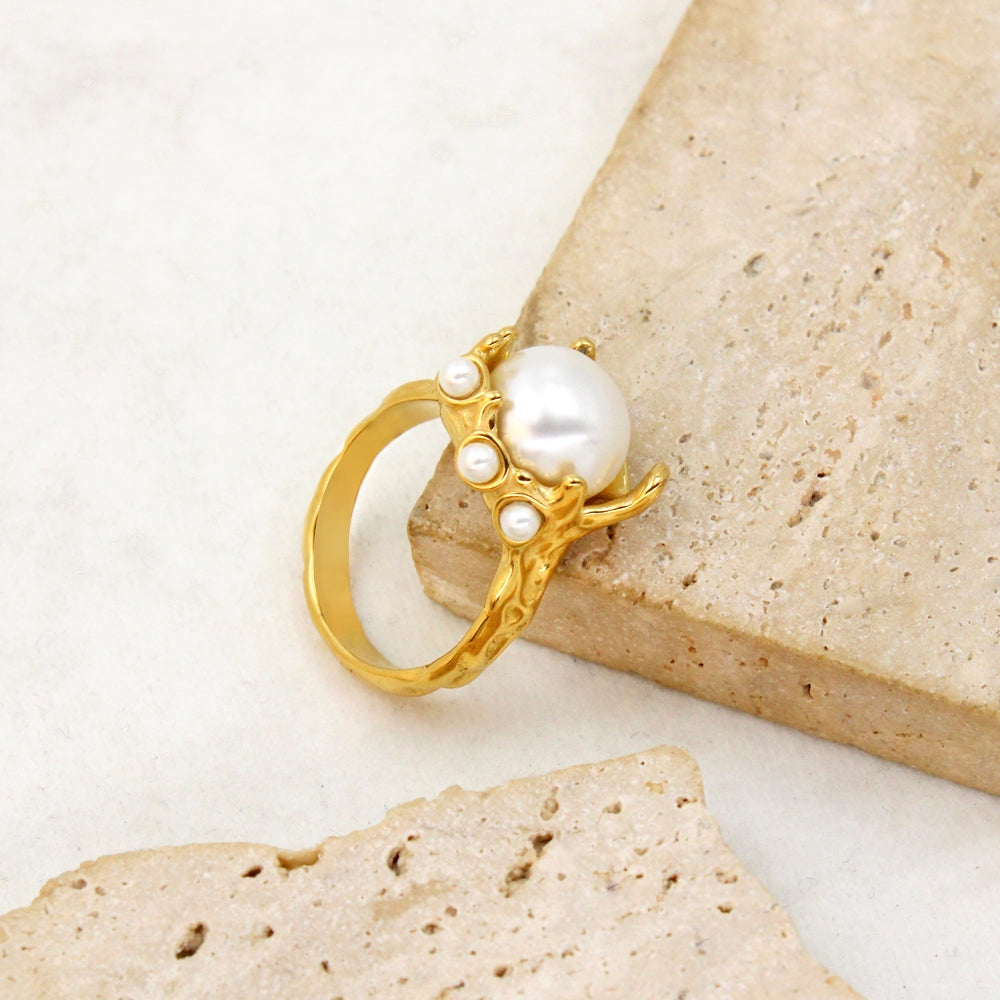 Elegant Geometric 18K Gold Plated Pearl Ring
