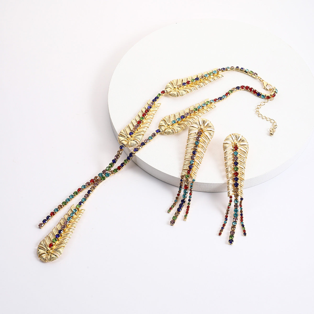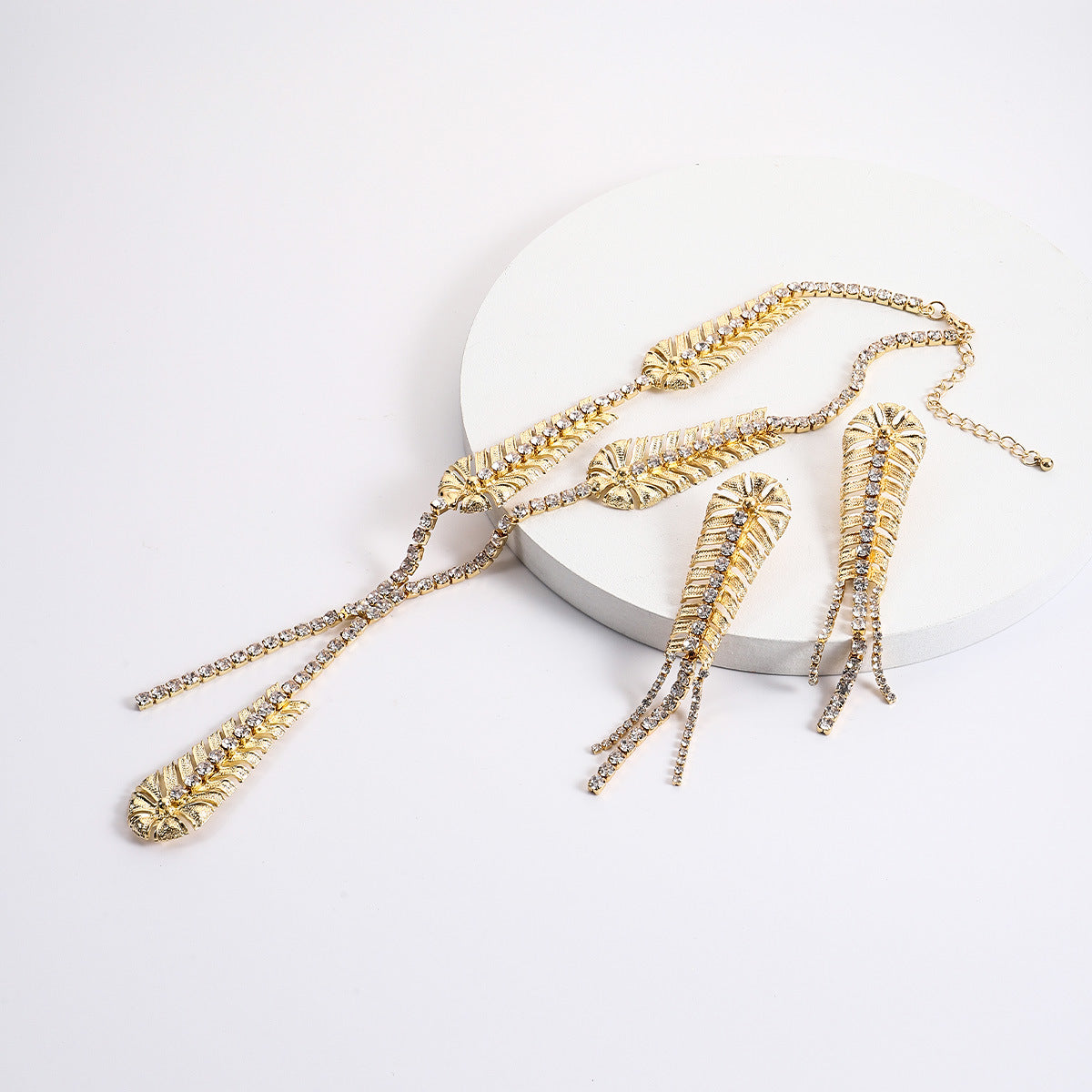Elegant Geometric Alloy Tassel Leaf Floral Jewelry Set for Women