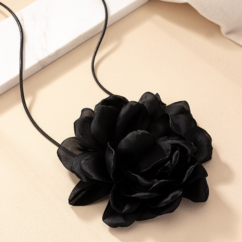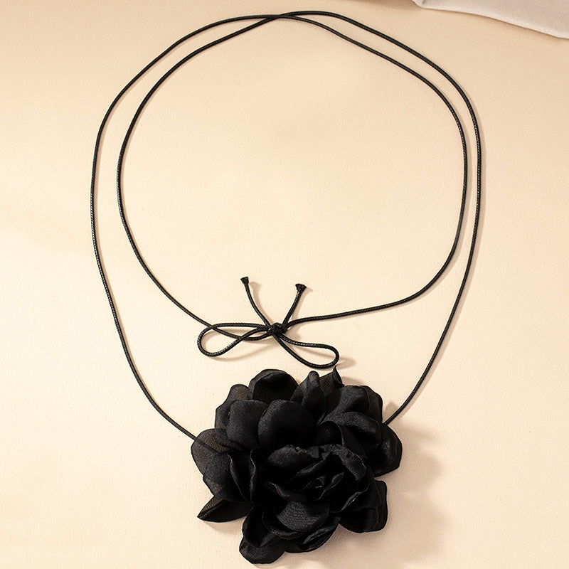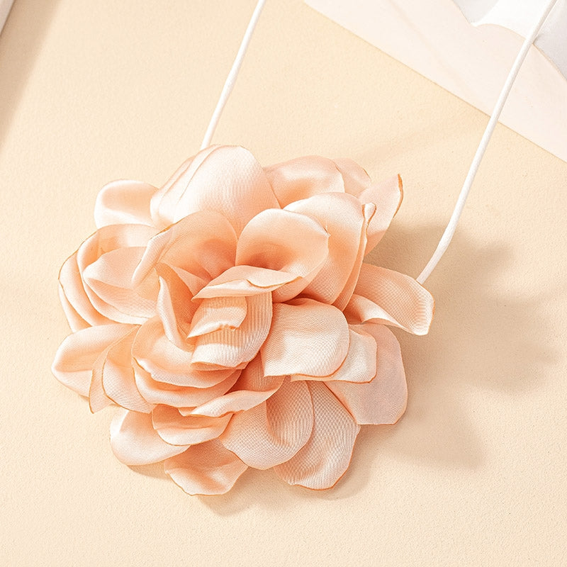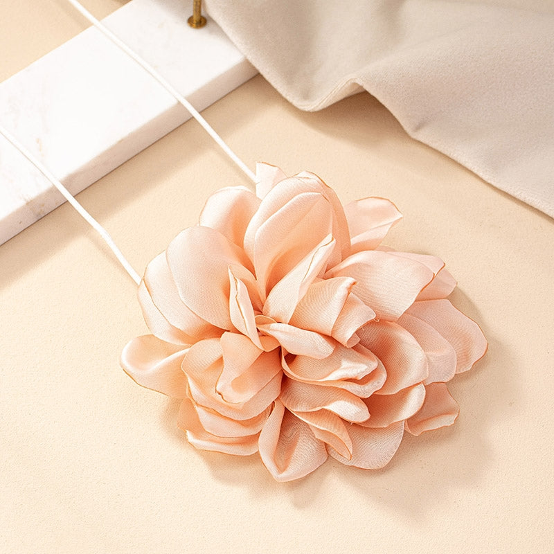 Elegant Retro Floral Fabric Women's Choker Necklace with Camellia Design