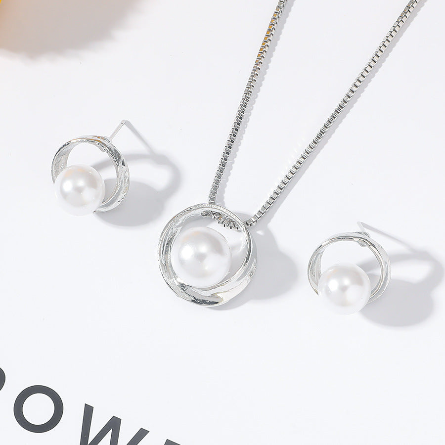 Elegant Round Pearl Jewelry Set - Necklace and Earrings for Women