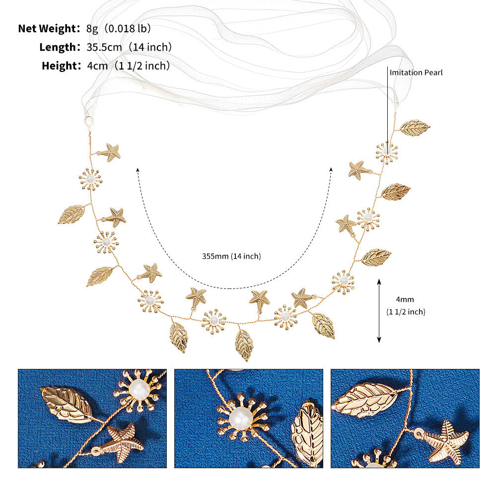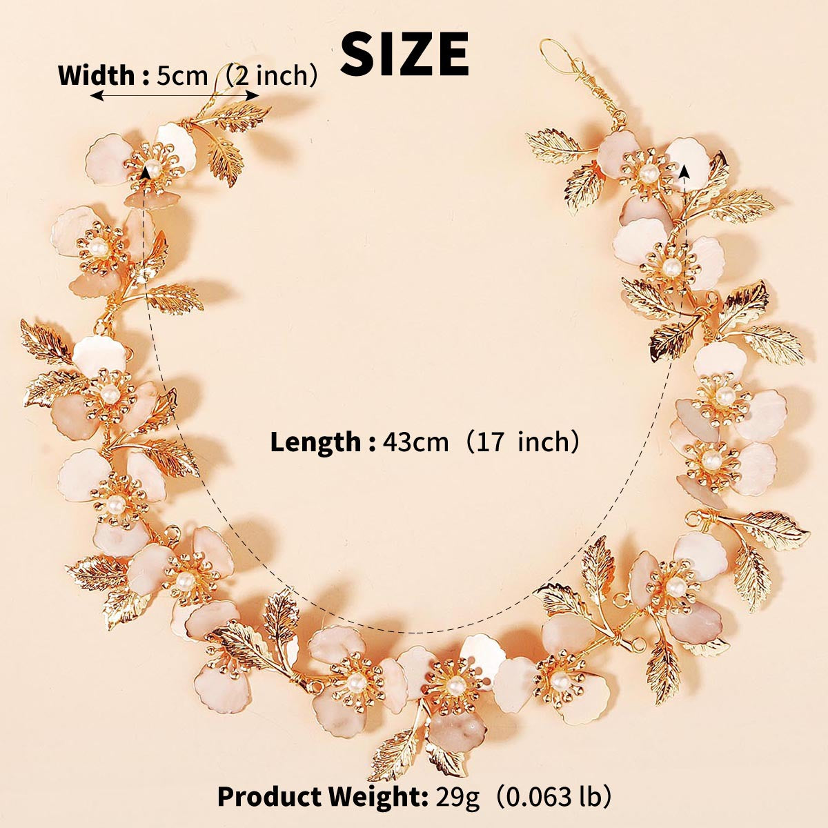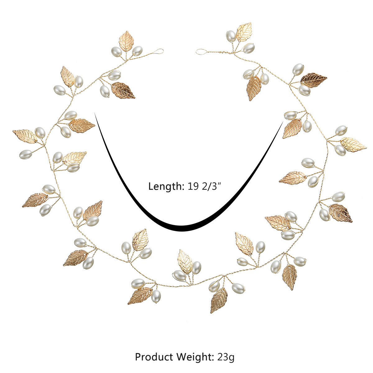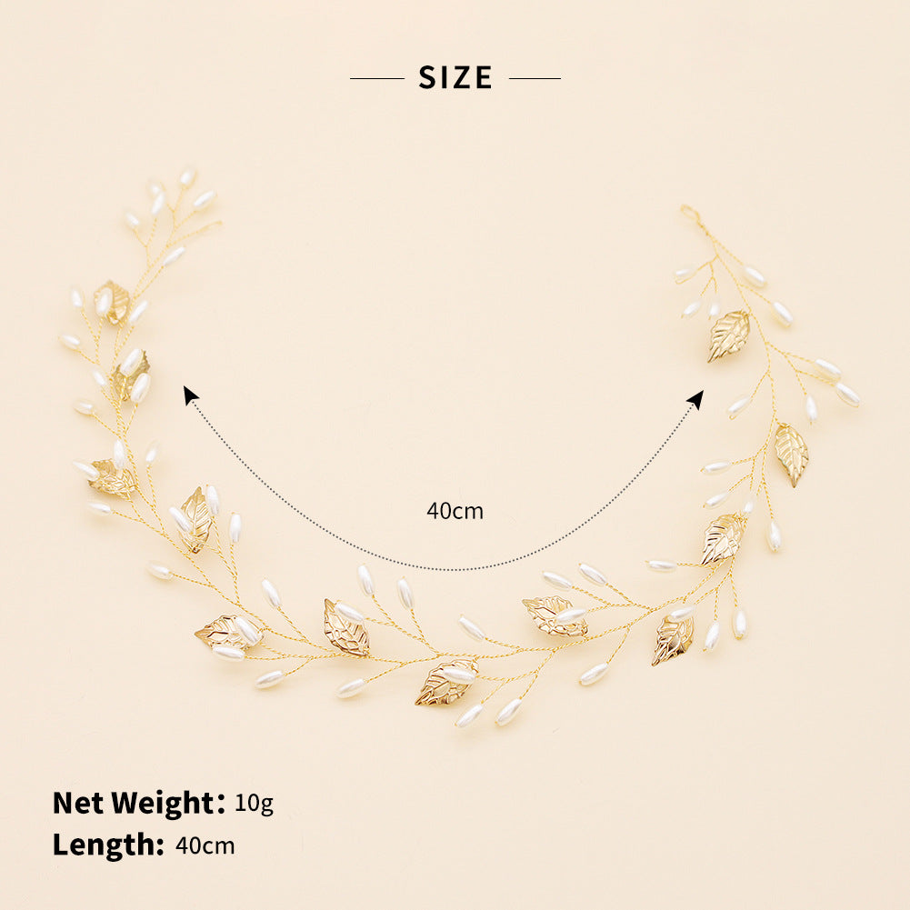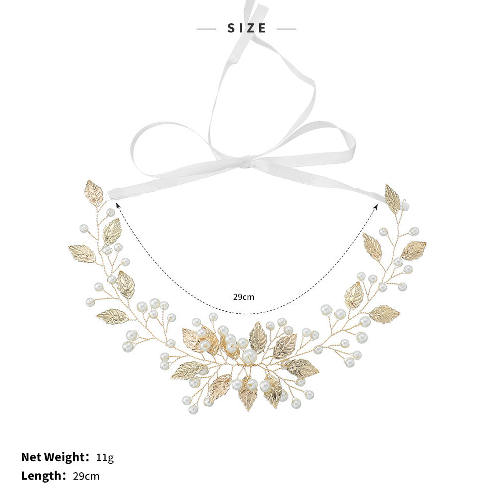 Elegant Vintage Gold Leaf Bridal Hairband with Pearl and Floral Accents