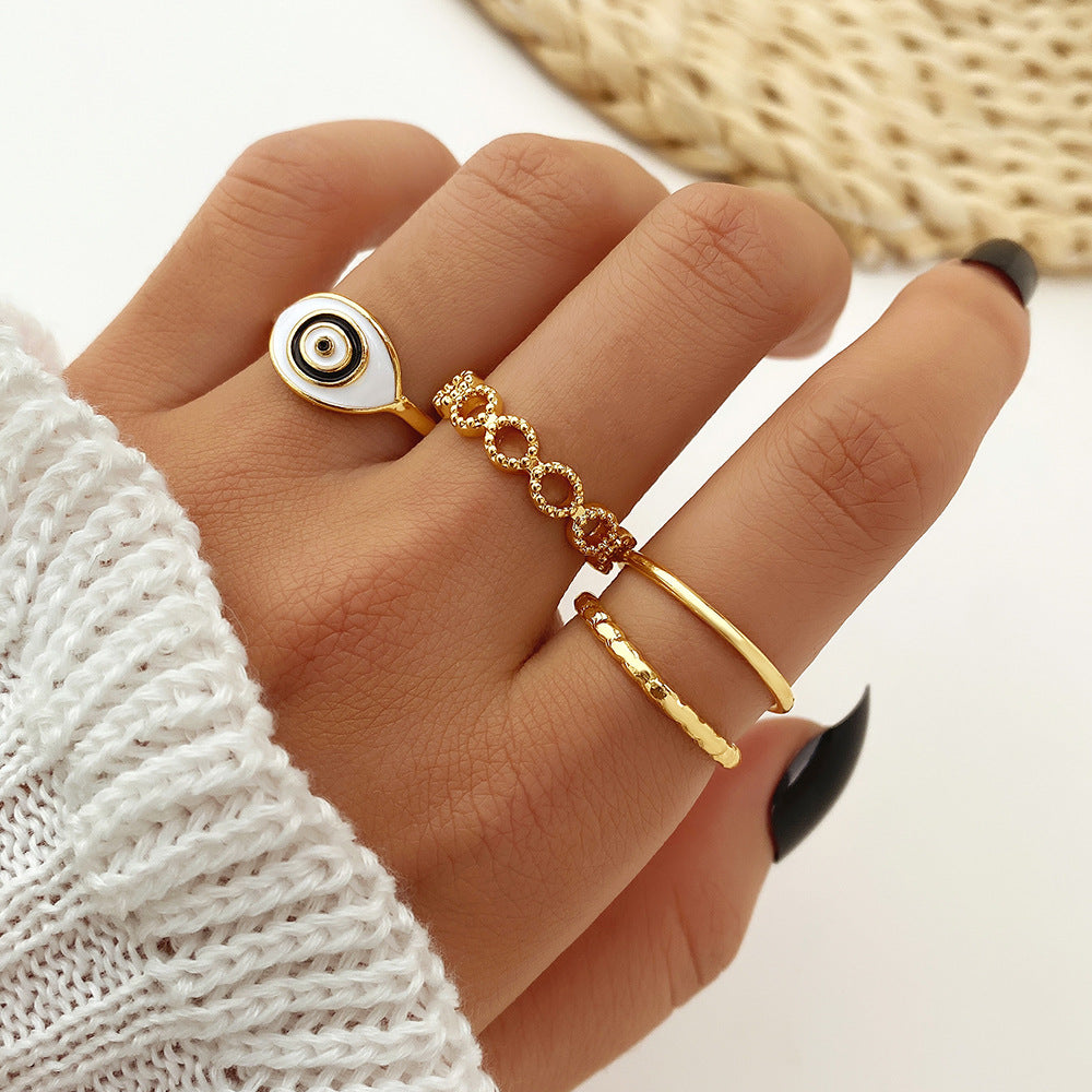 Elegant Geometric Blue Eye Alloy Hollow Out Rhinestone Women's Open Ring