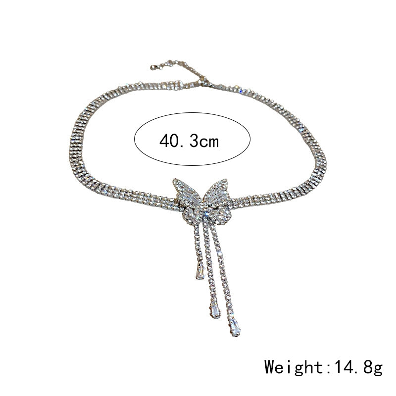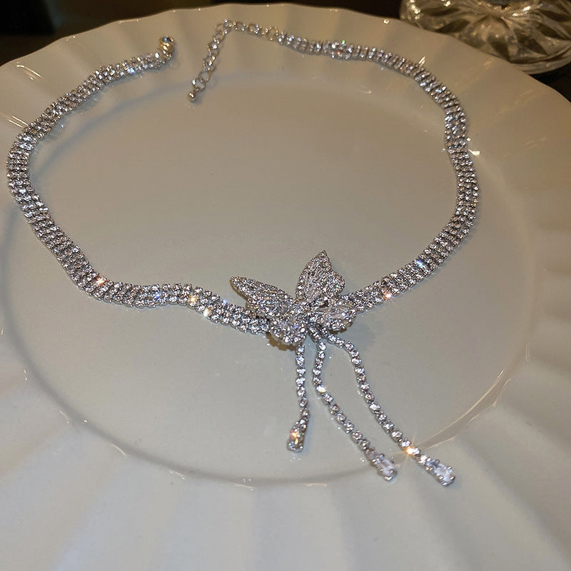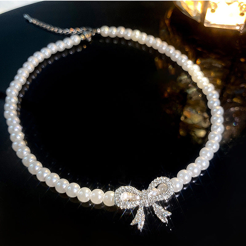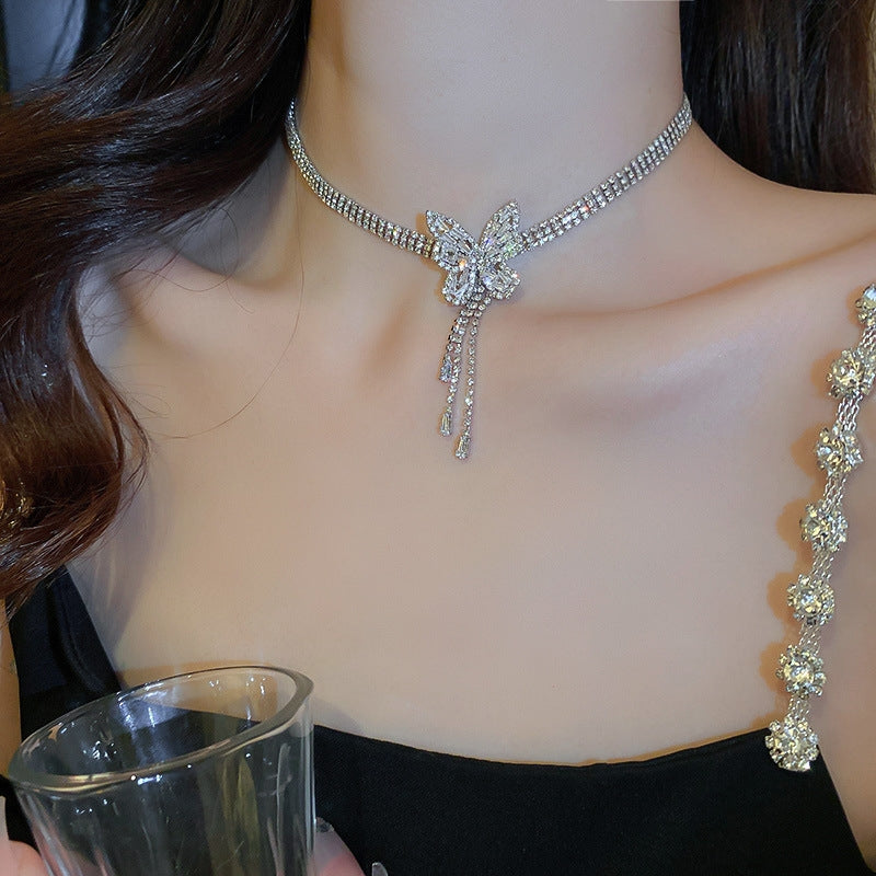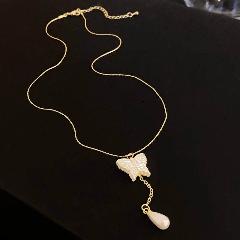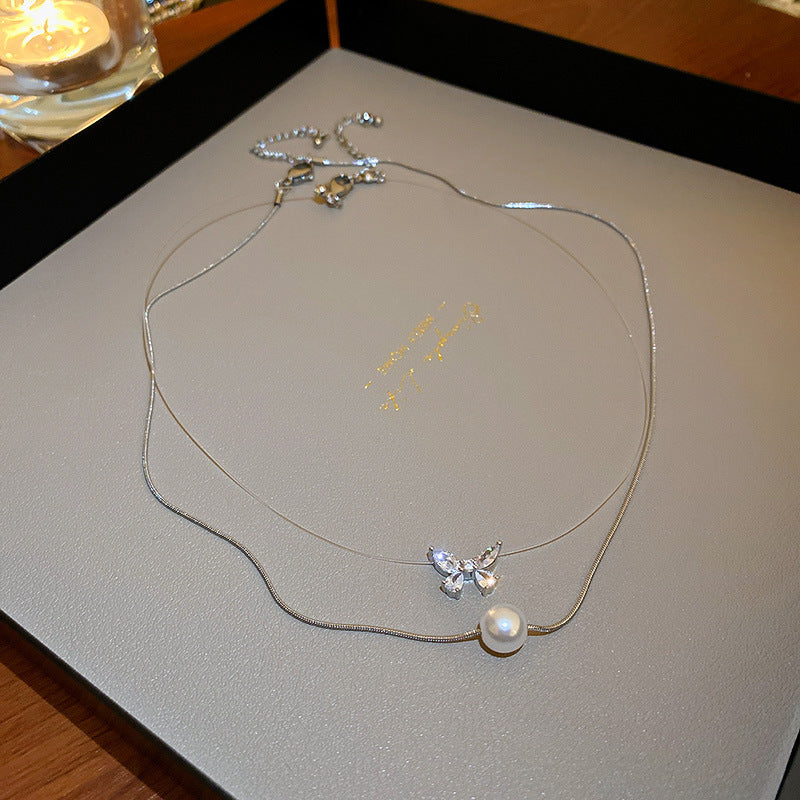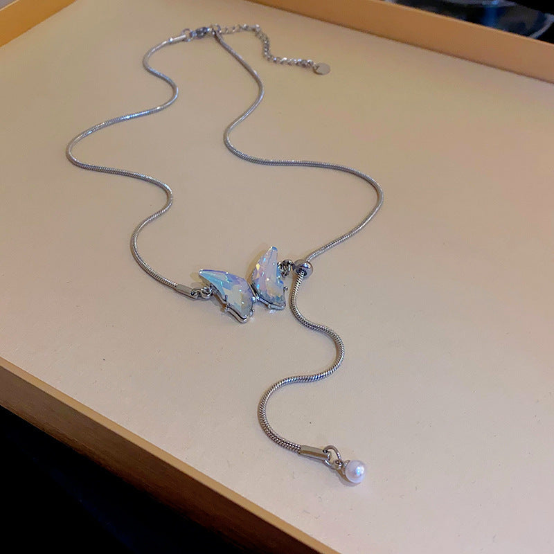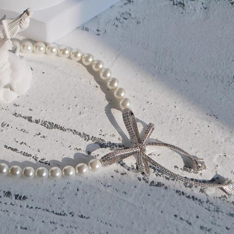 Elegant Korean Butterfly Rhinestone Pearl Choker Necklace