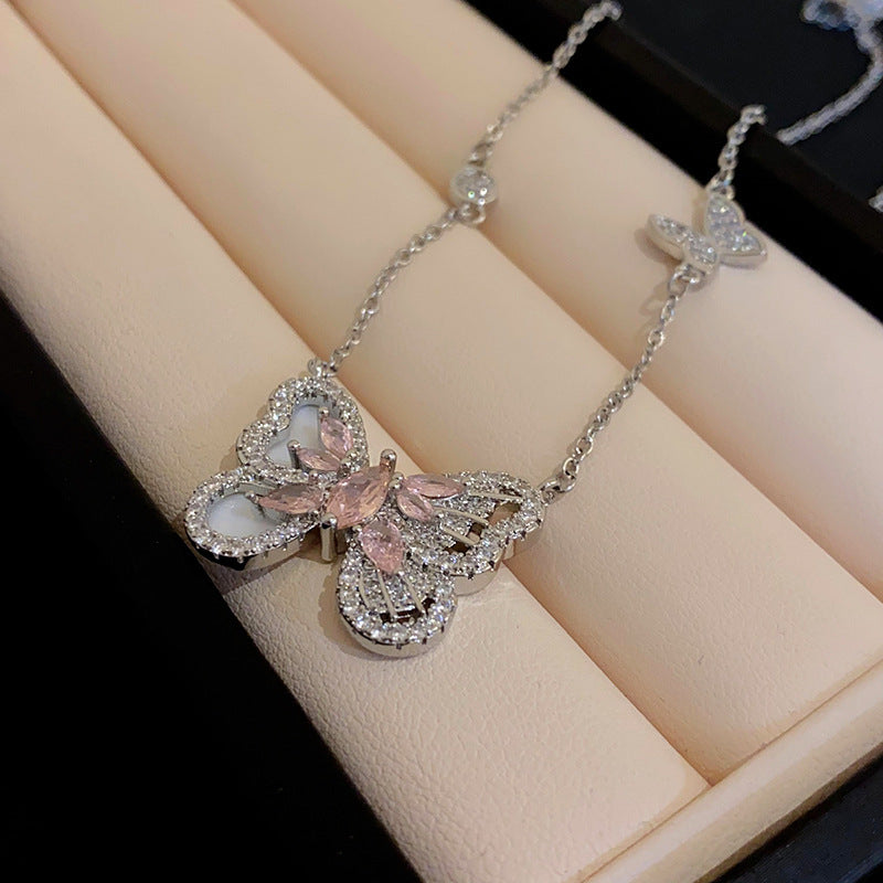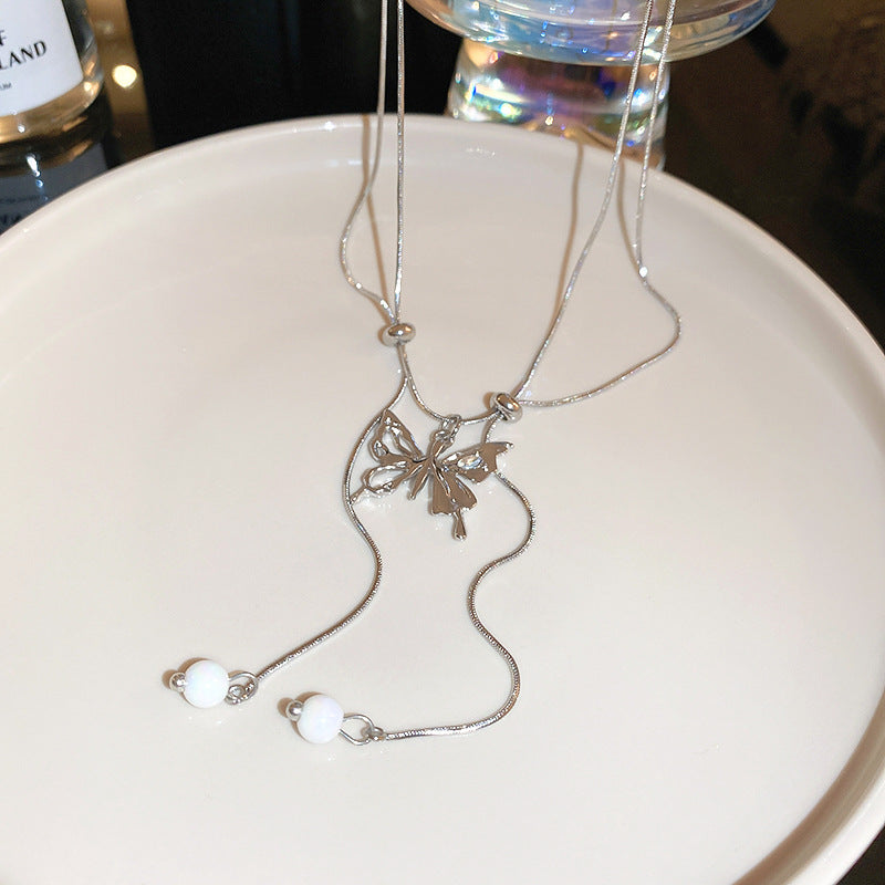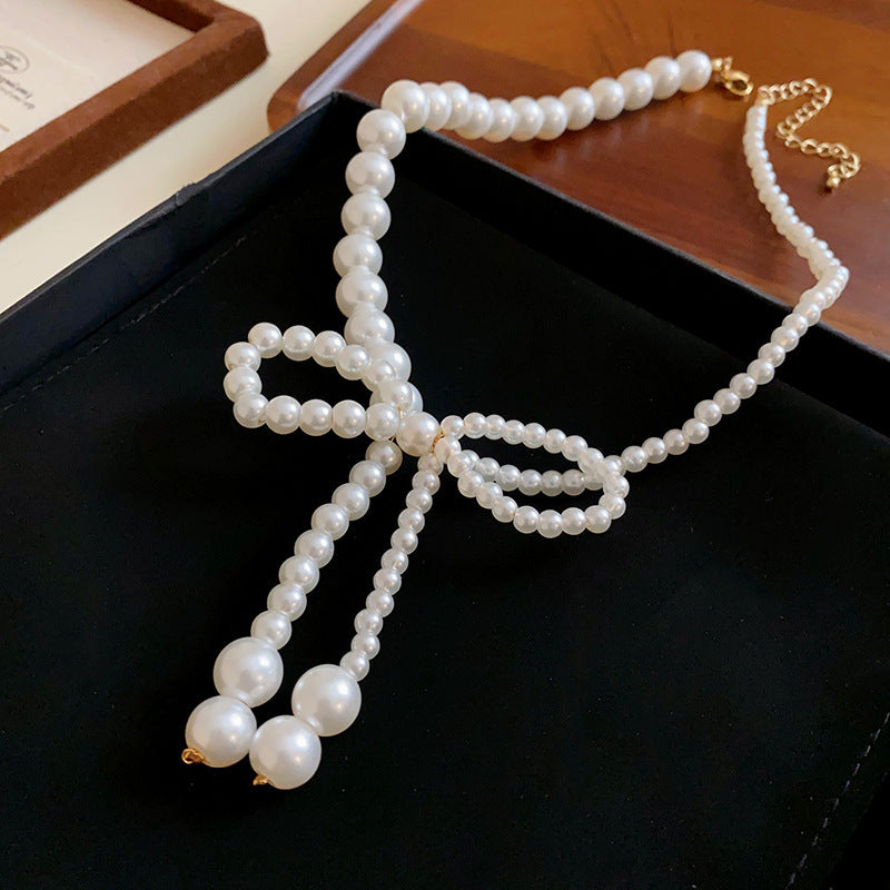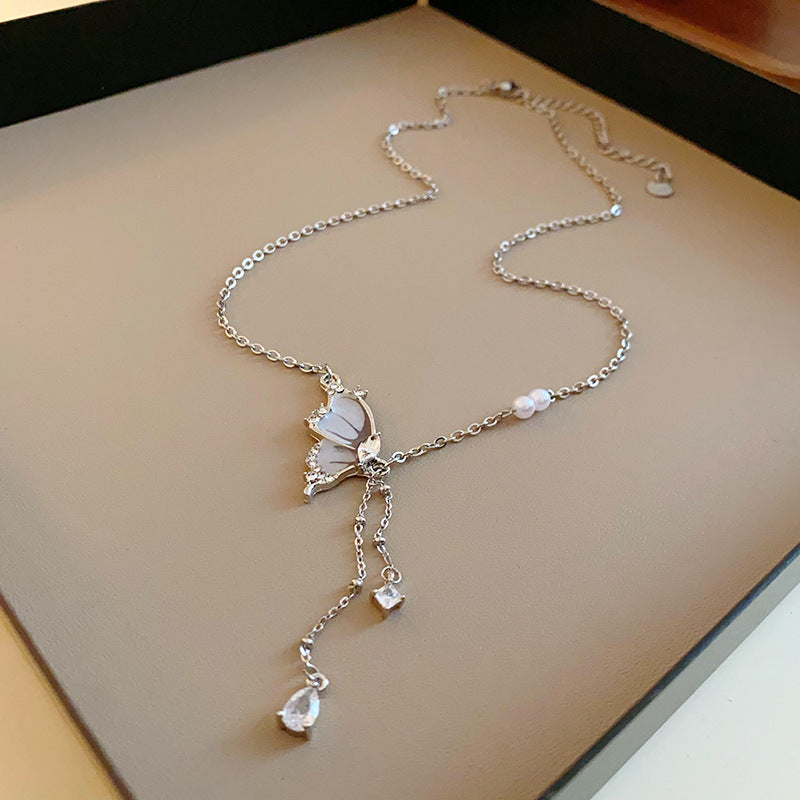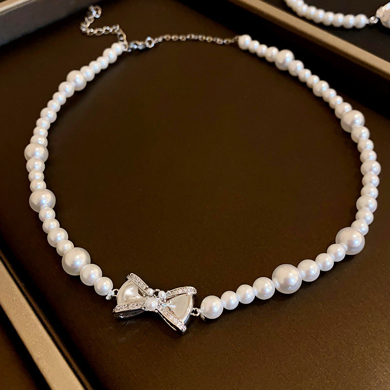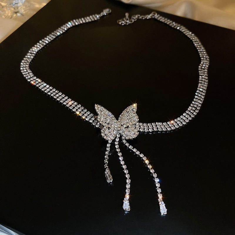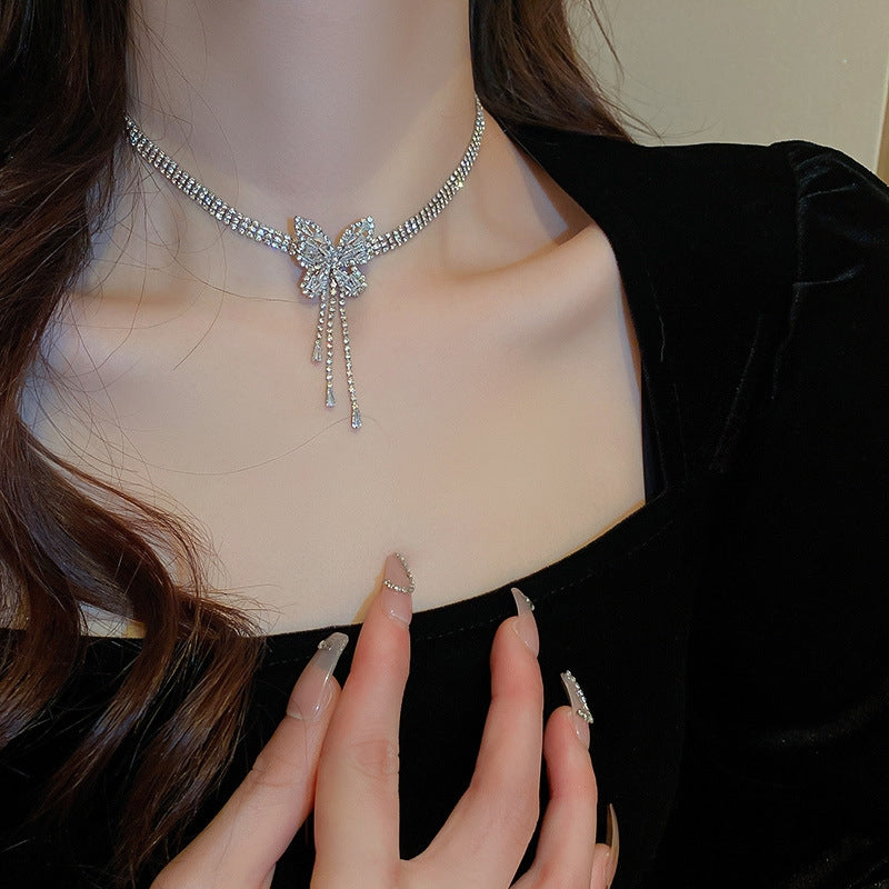 Elegant Korean Butterfly Rhinestone Pearl Choker Necklace