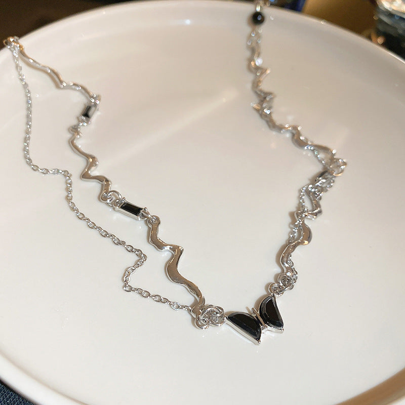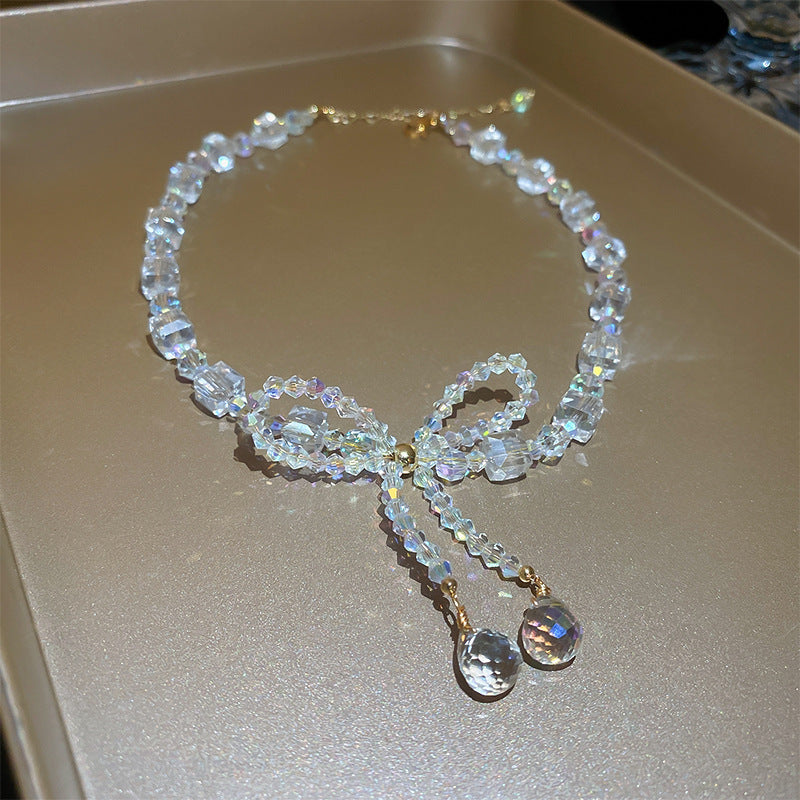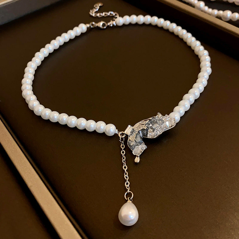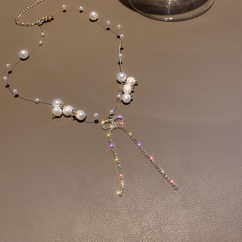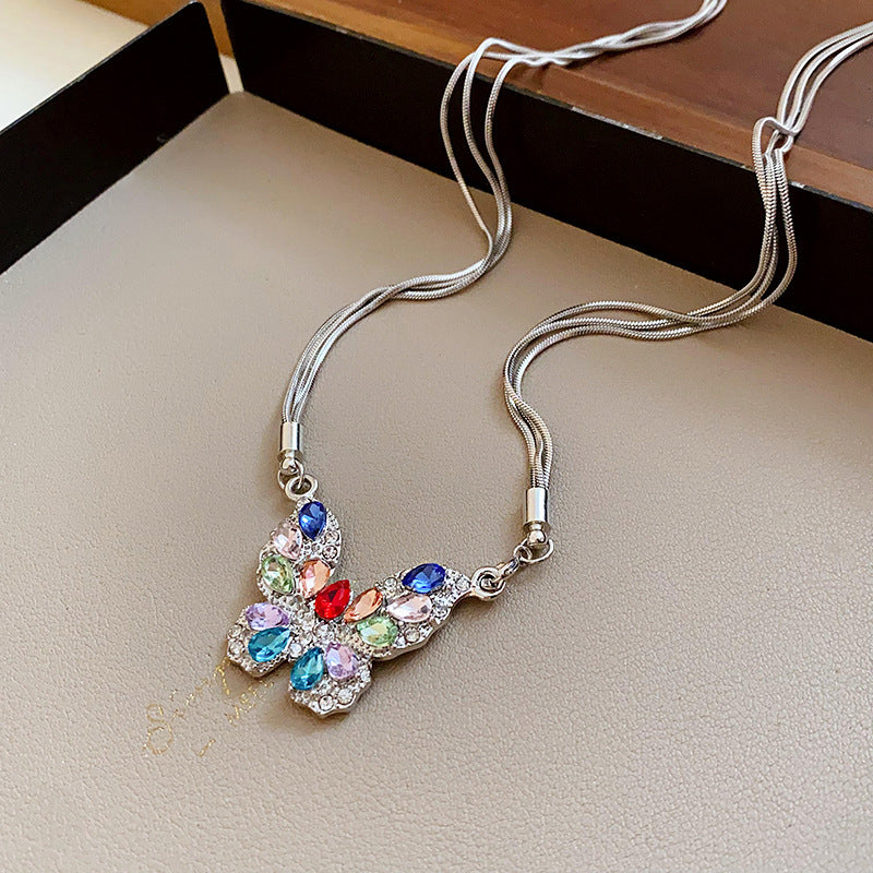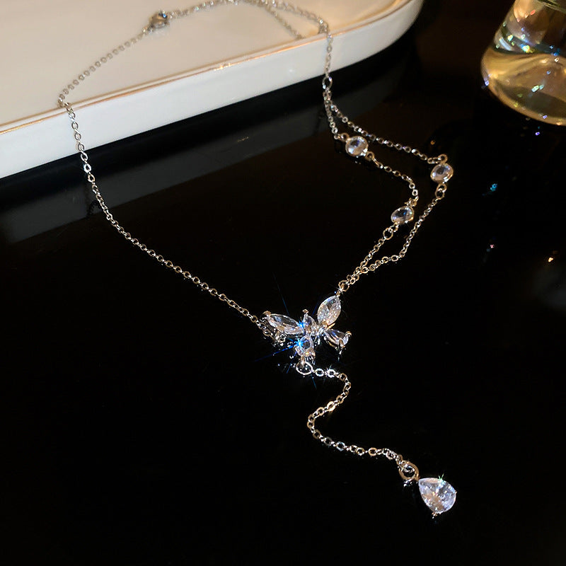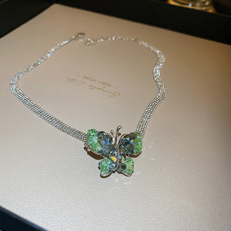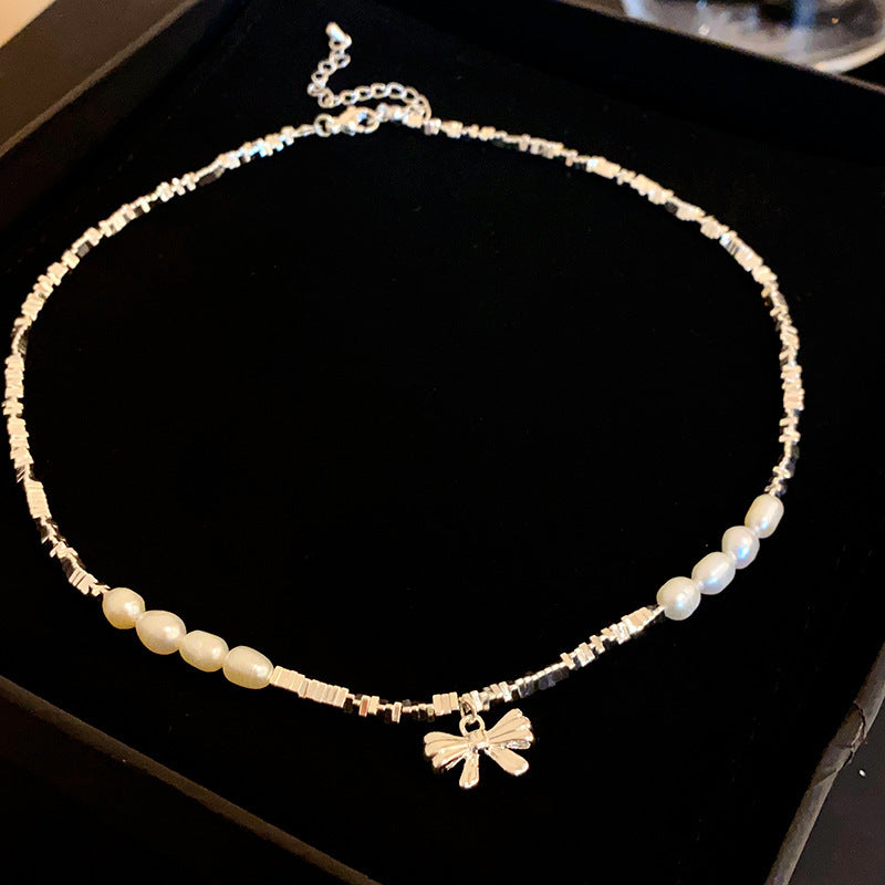 Elegant Korean Butterfly Rhinestone Pearl Choker Necklace