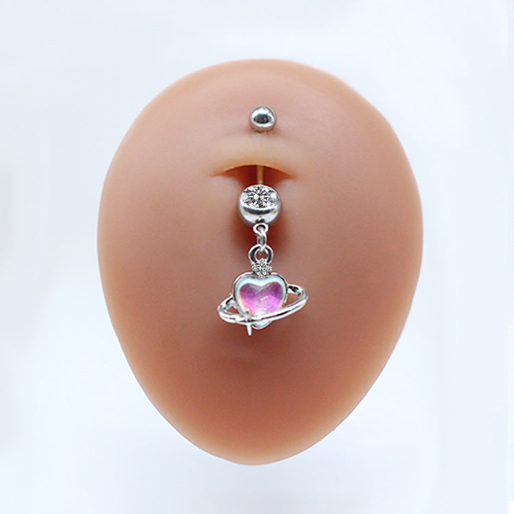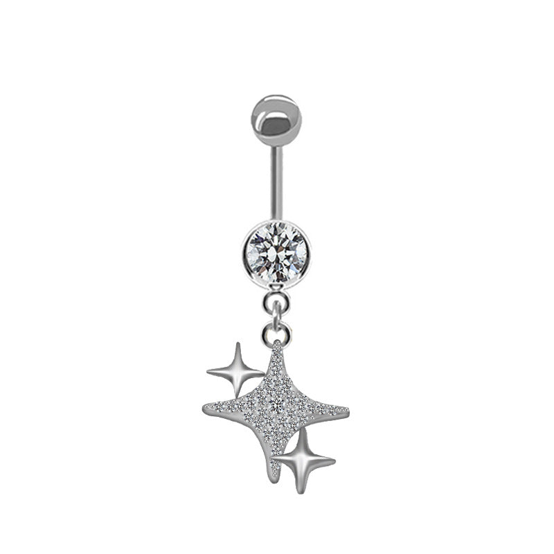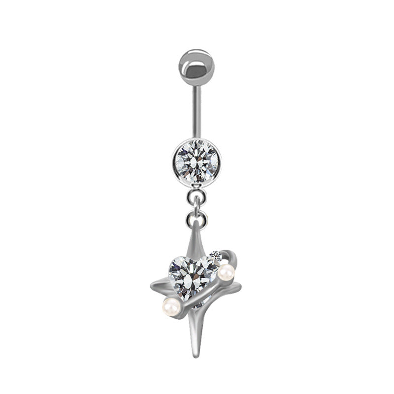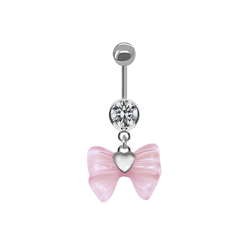 Elegant Heart Shape Butterfly Bow Knot Zircon White Gold Plated Belly Ring