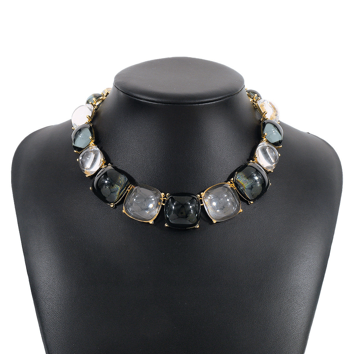 Elegant Vintage Square Rhinestone Necklace and Bohemian Geometric Jewelry Set