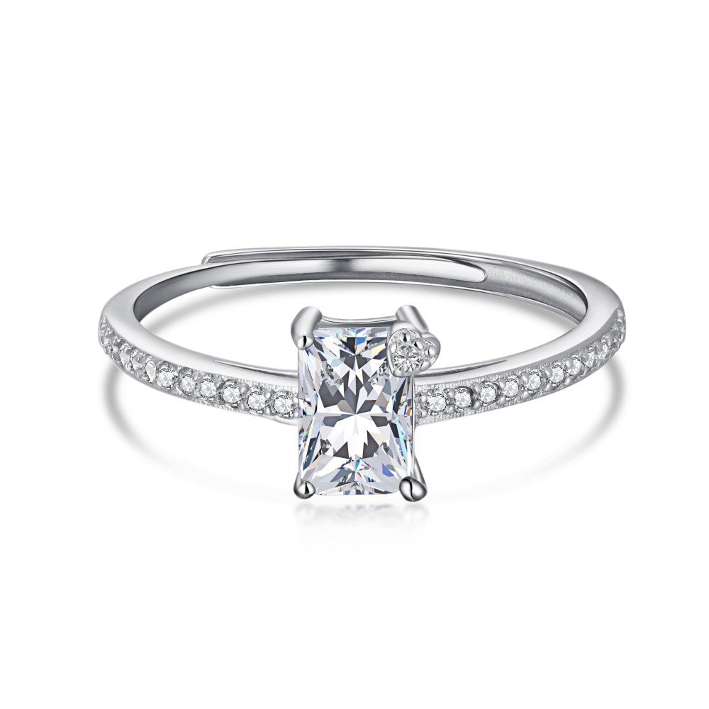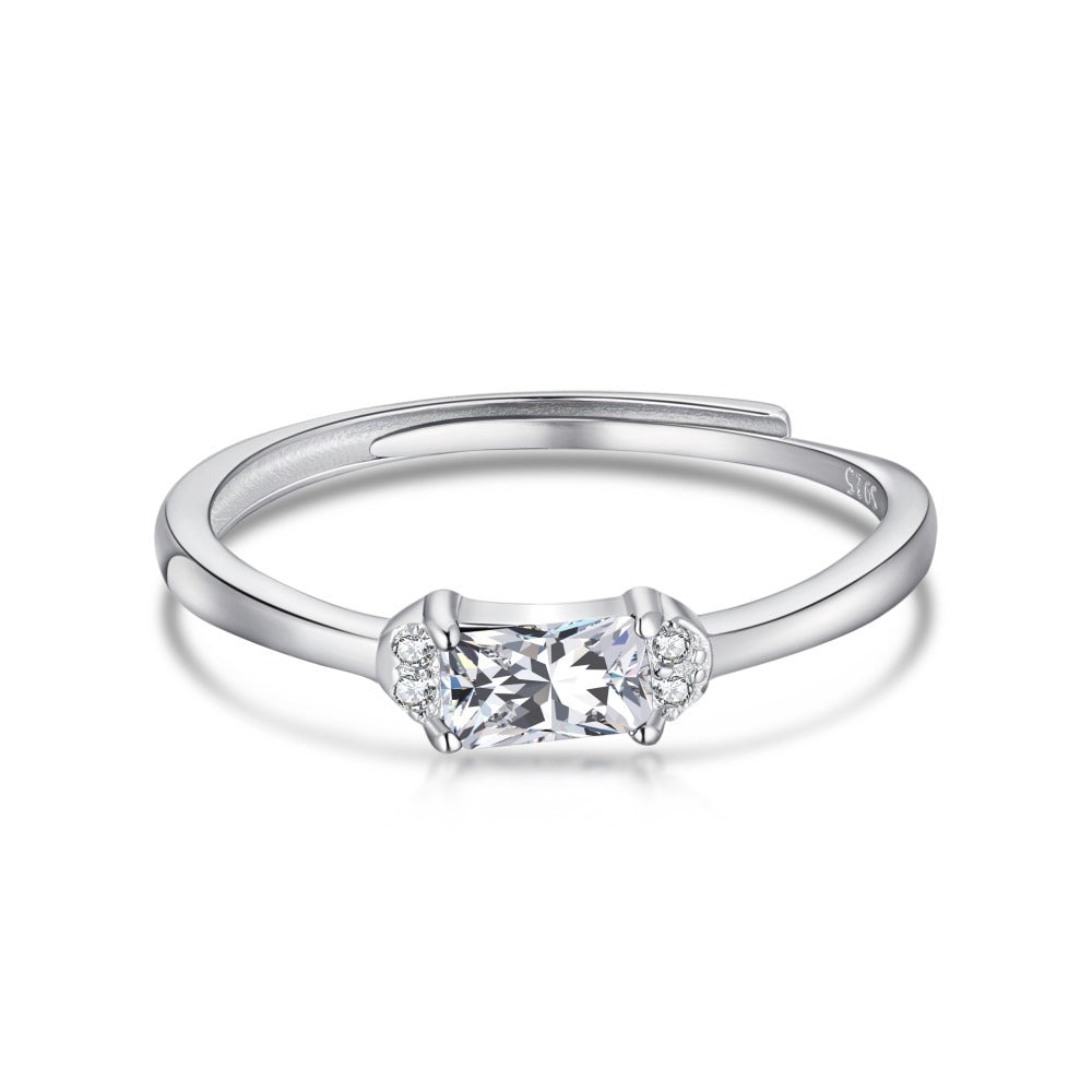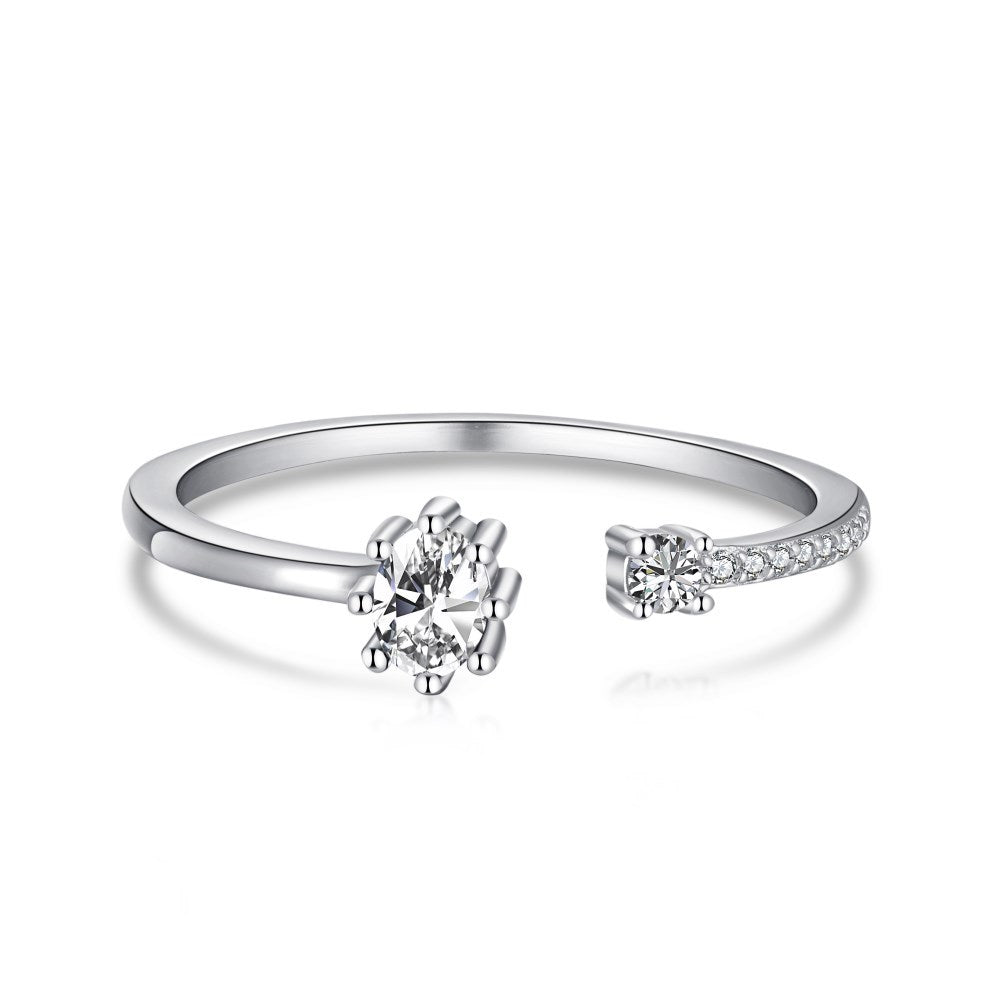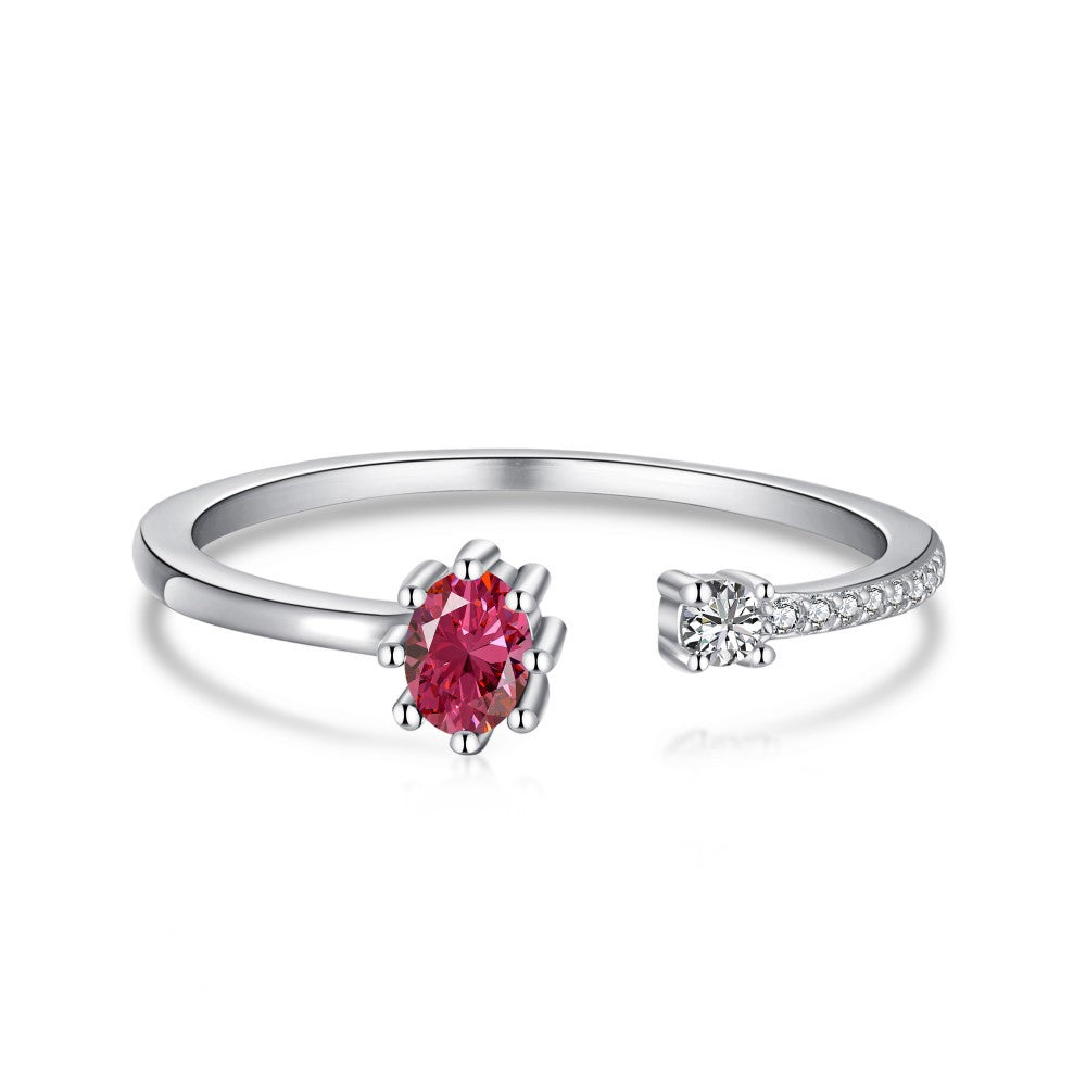 Elegant Multicolor Zircon Adjustable Sterling Silver Open Ring